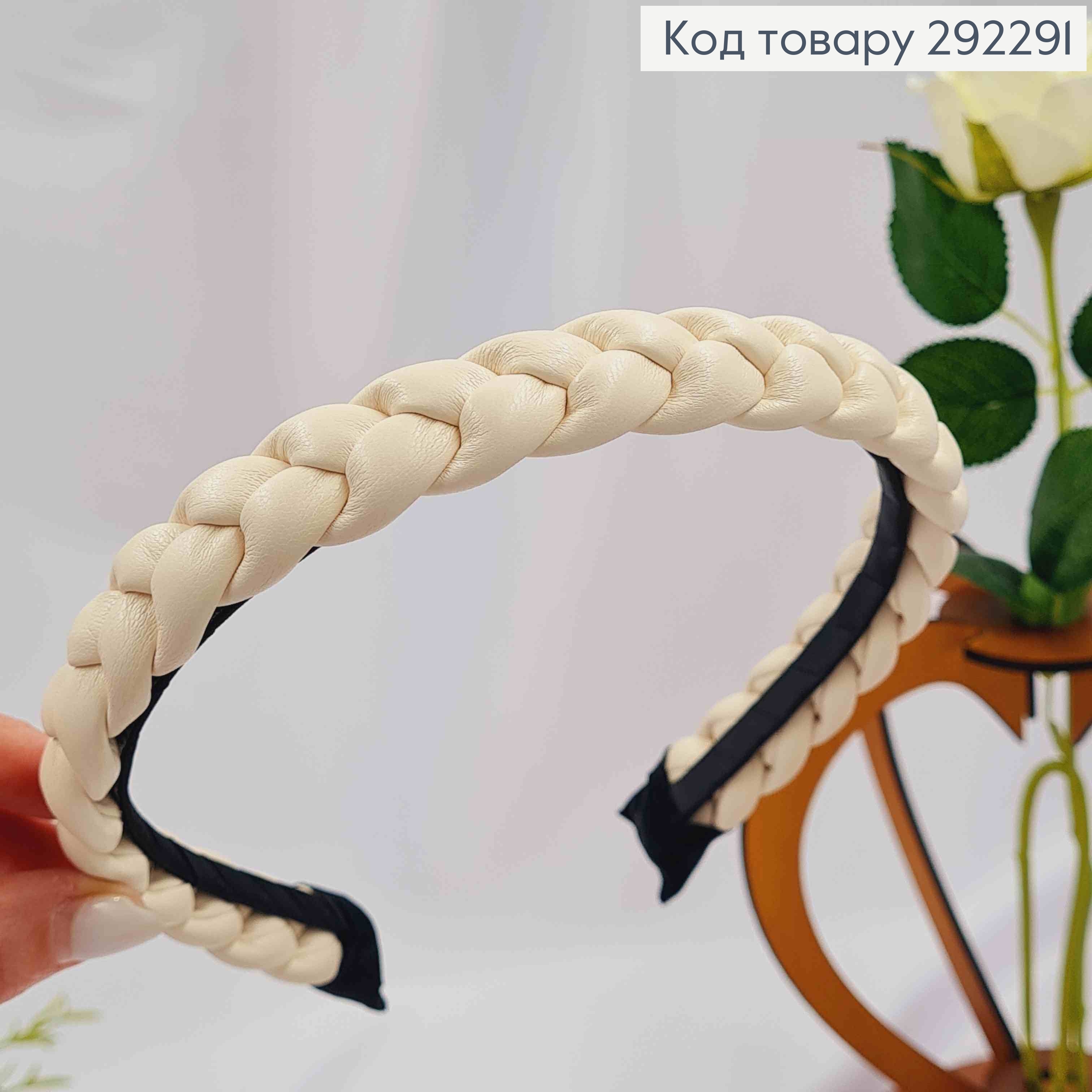 Обруч з екошкіри, плетений Косичка, МОЛОЧНОГО кольору, шир. 2см