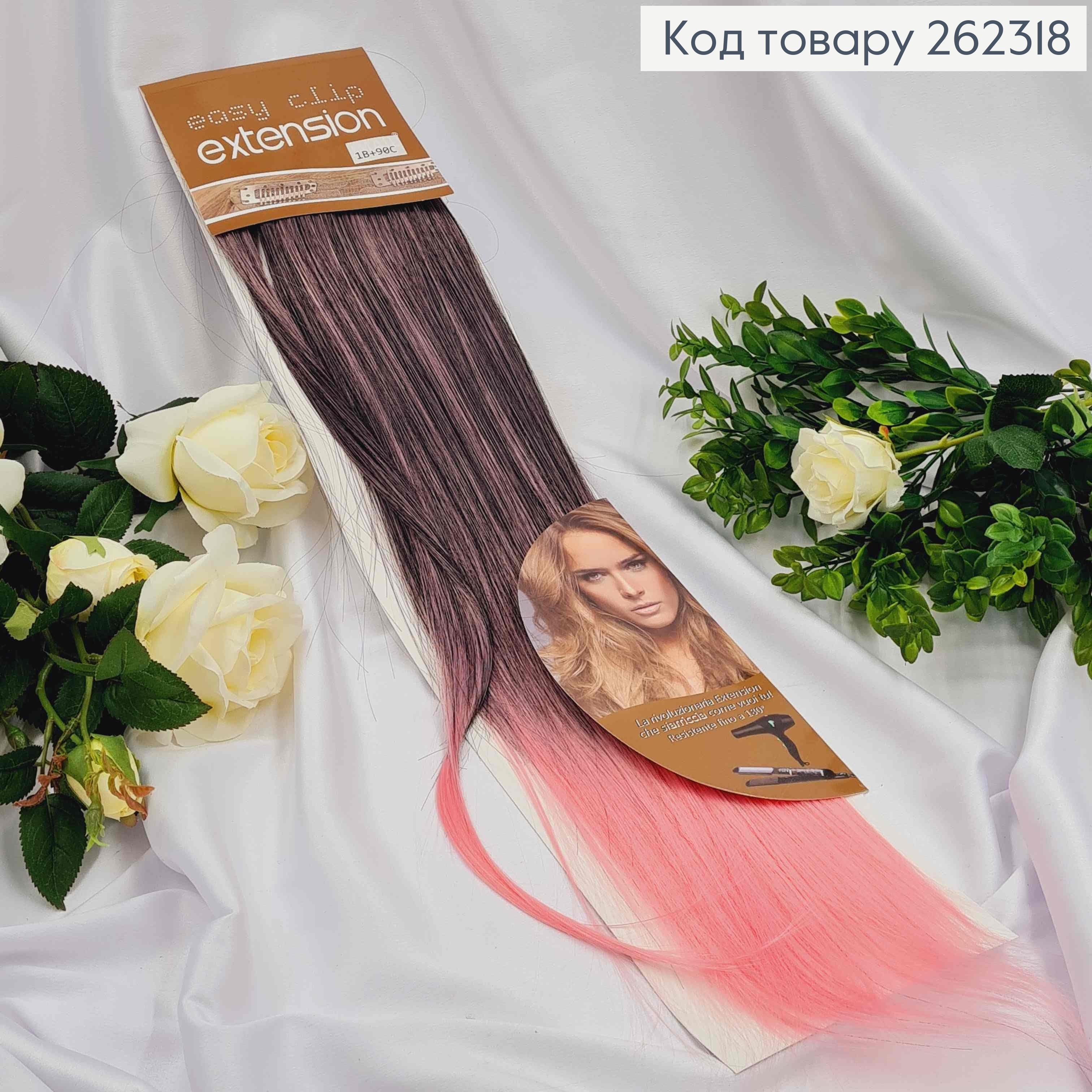 Пасма штучного волосся ЧОРНО-РОЖЕВЕ омбре на двох заколках, довжина 60см.