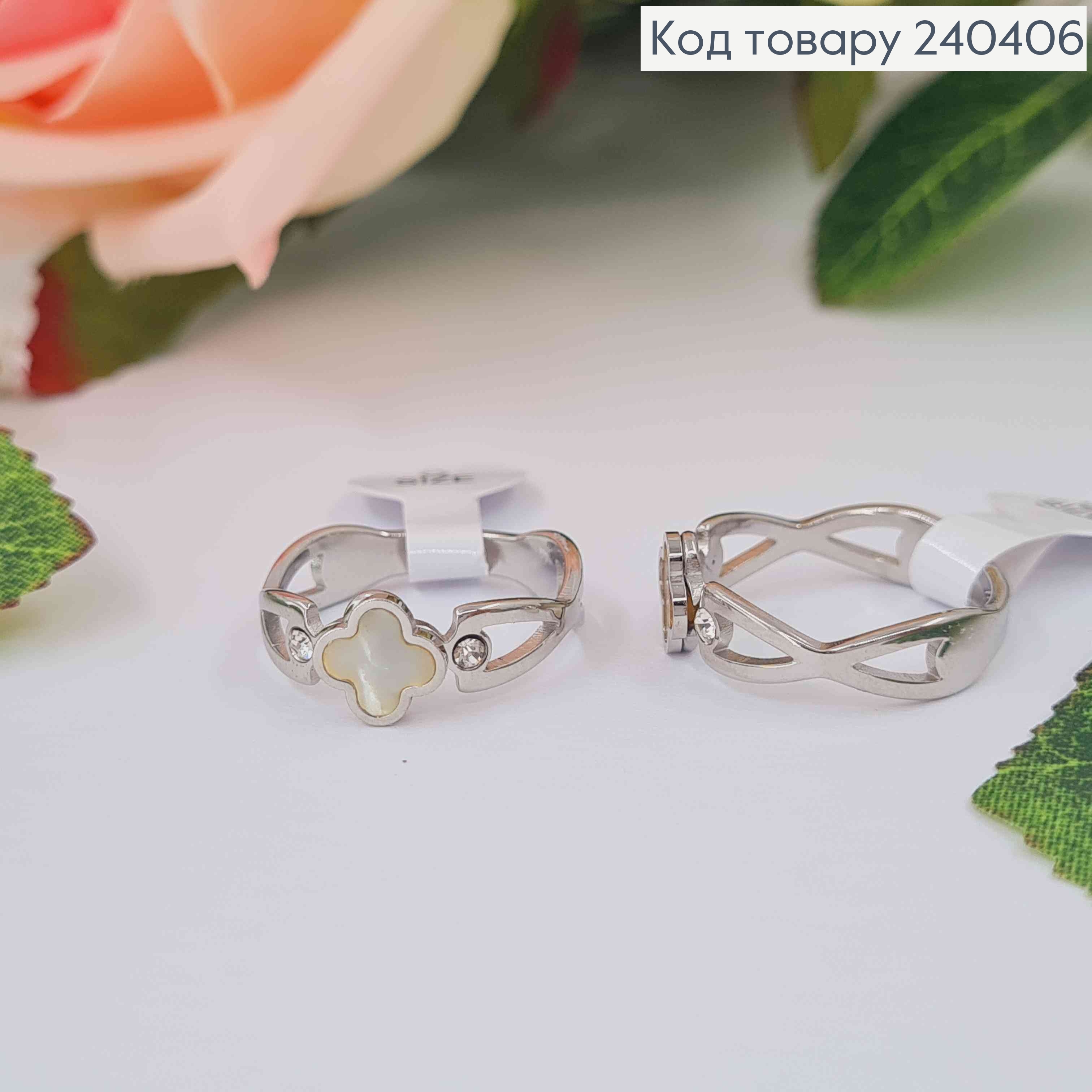 Перстень срібного кольору, Van Cleef з Білою емаллю, сталь Stainless Steel 270031 фото