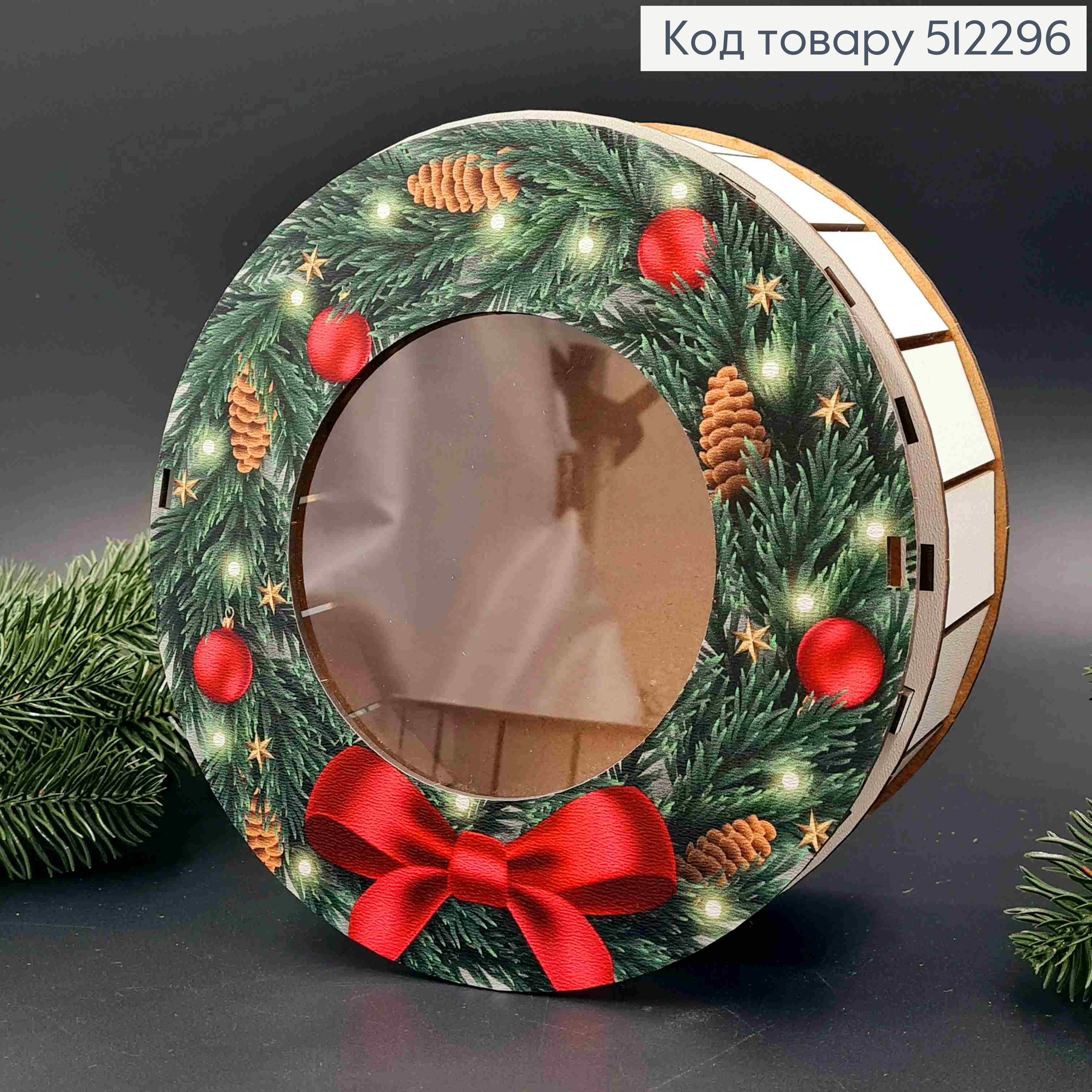 Подарункова дерев'яна коробка "Новорічний Віночок", Кругла 20см, висота 6см 512296 фото