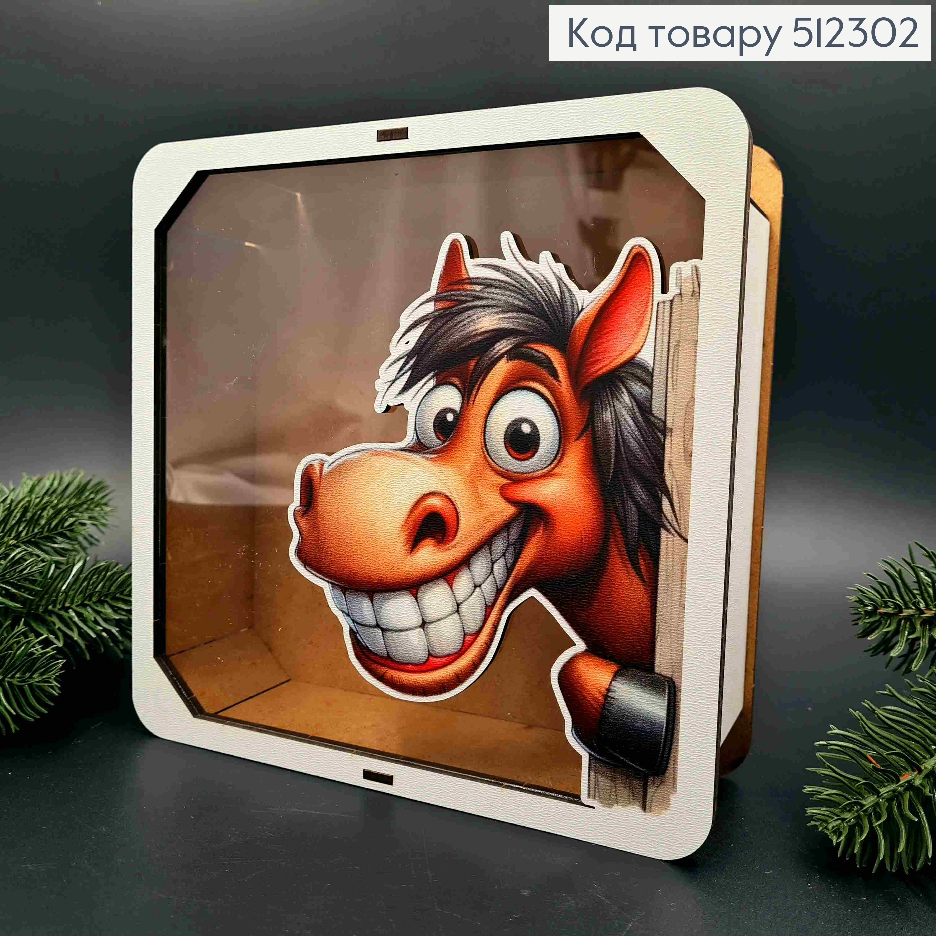 Подарункова дерев'яна коробка з принтом "Кінь", Квадратна 20*20см, висота 6см 512302 фото