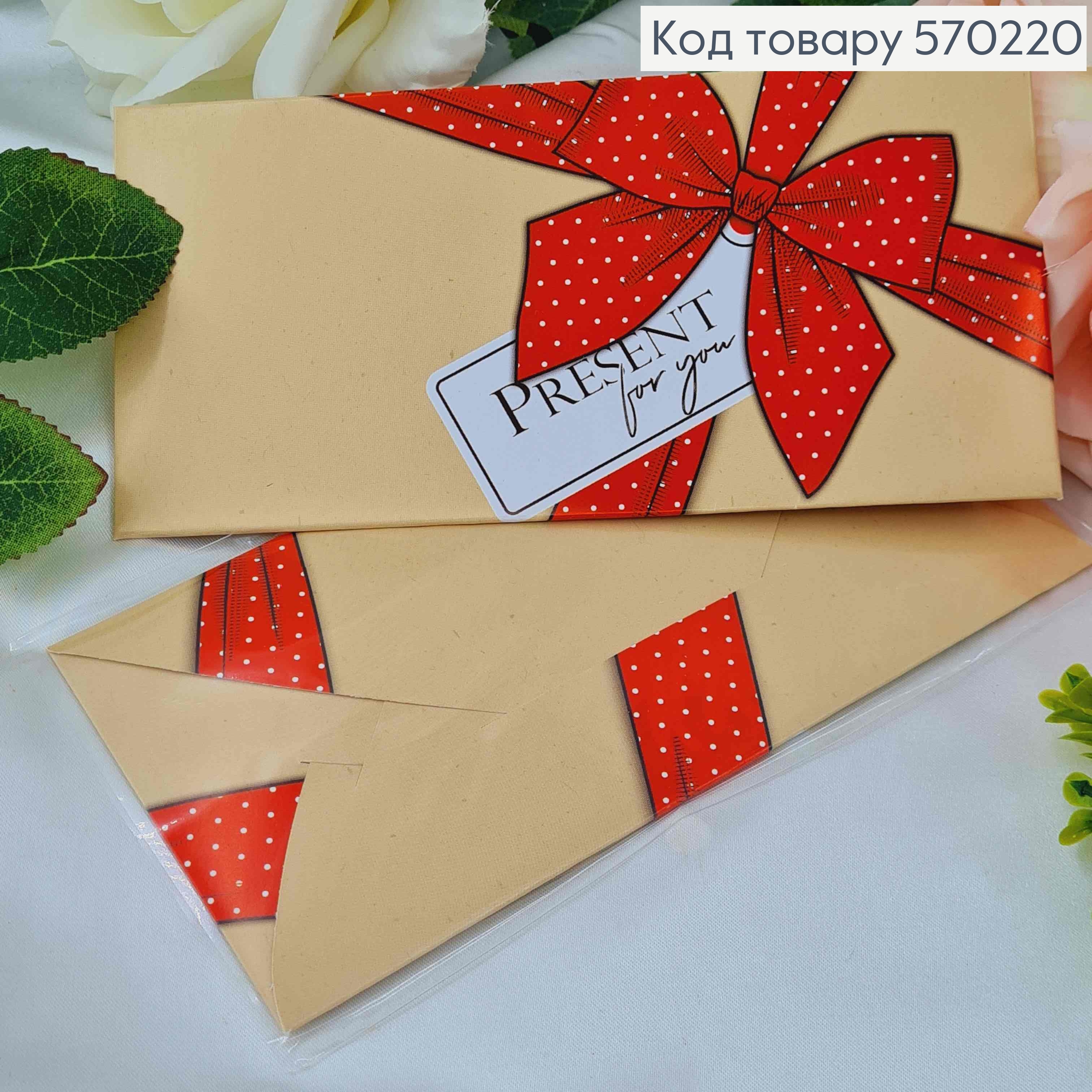 Подарочный конверт "PRESENT for you" (с бантиком)8*16,5см, цена за 1шт, Украина