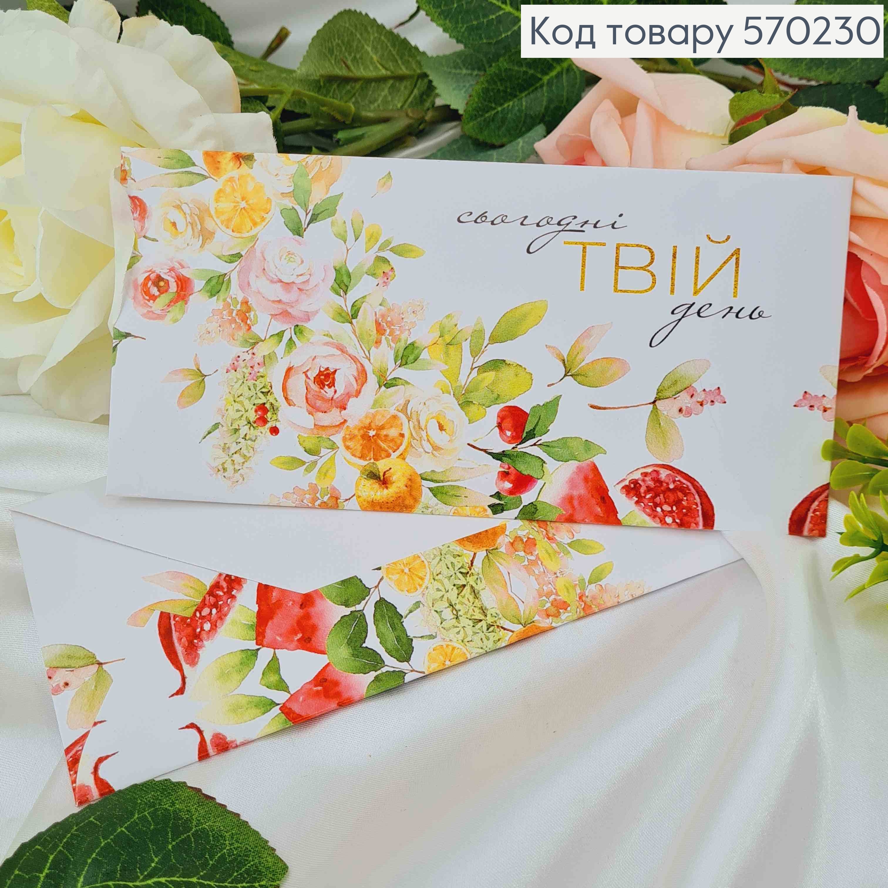 Подарунковий конверт "сьогодні ТВІЙ день" 8*16,5см , ціна за 1шт, Україна