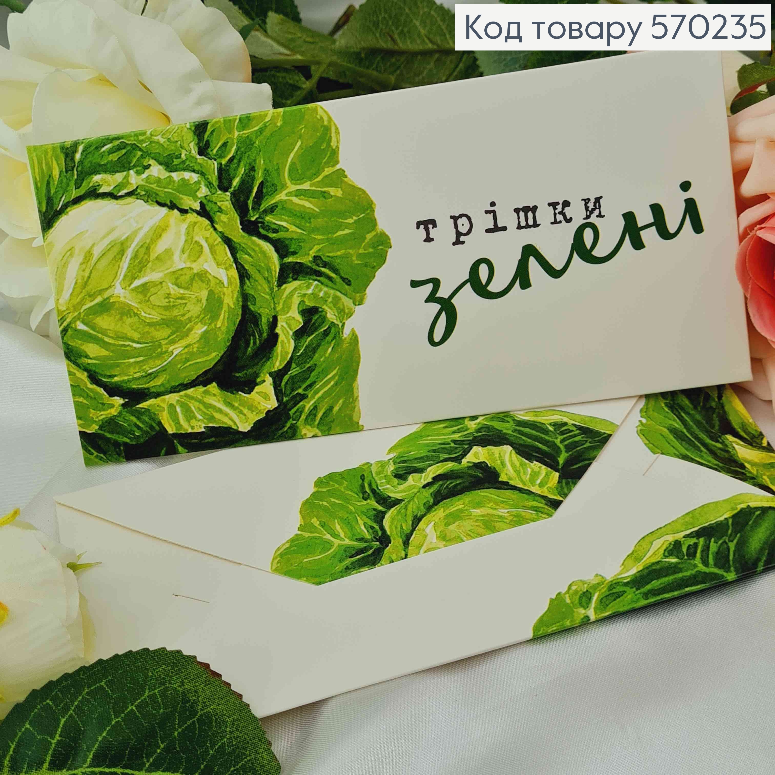 Подарунковий конверт "Трішки зелені" (капуста) 8*16,5см , ціна за 1шт, Україна
