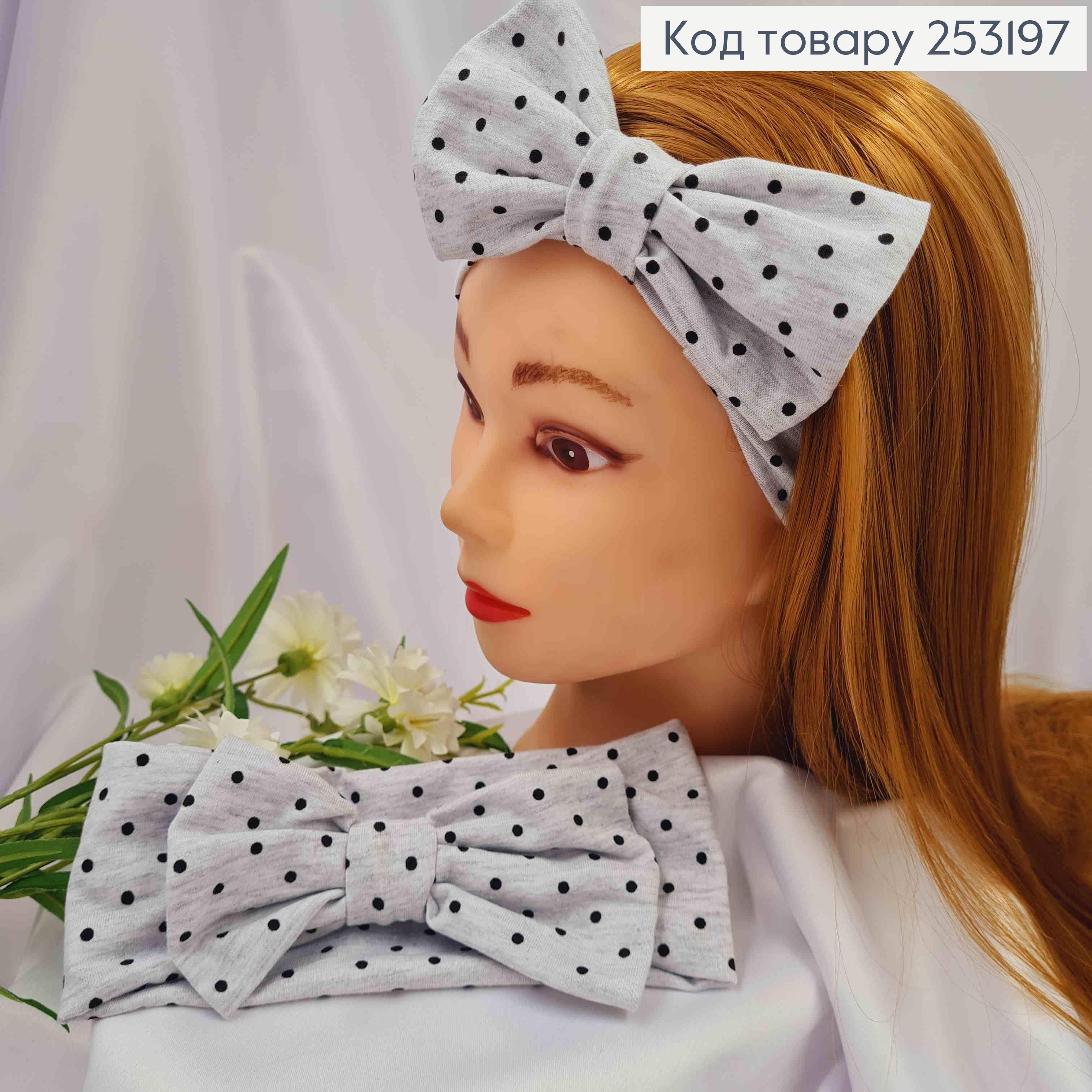 Пов'язка Бант дитяча, трикотаж, Сірого кольору в Горошок, 18*8см, ручна робота, Україна