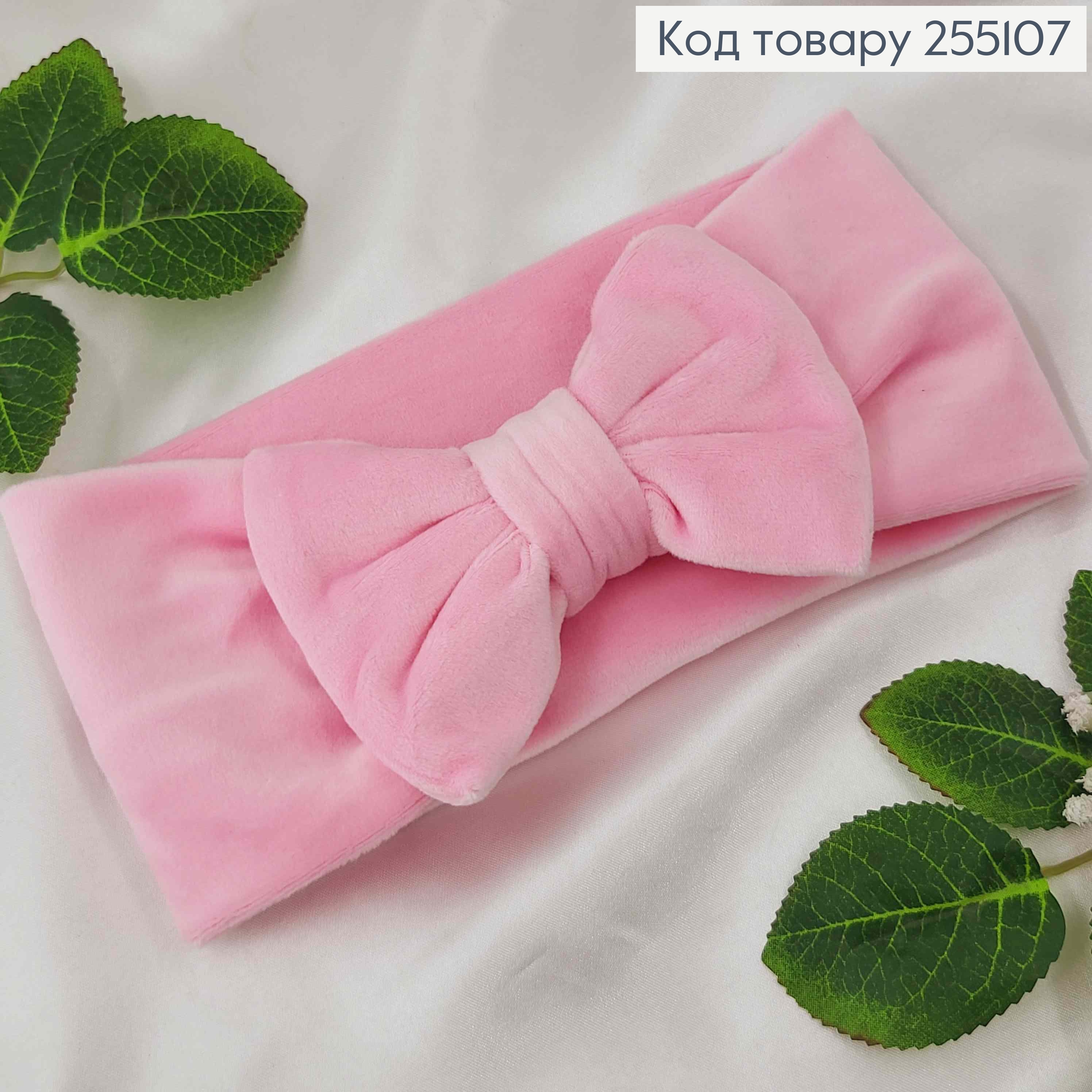 Пов'язка Бант, м'який велюр, дитячна Ніжно-рожева, 20*9см, ручна робота, Україна