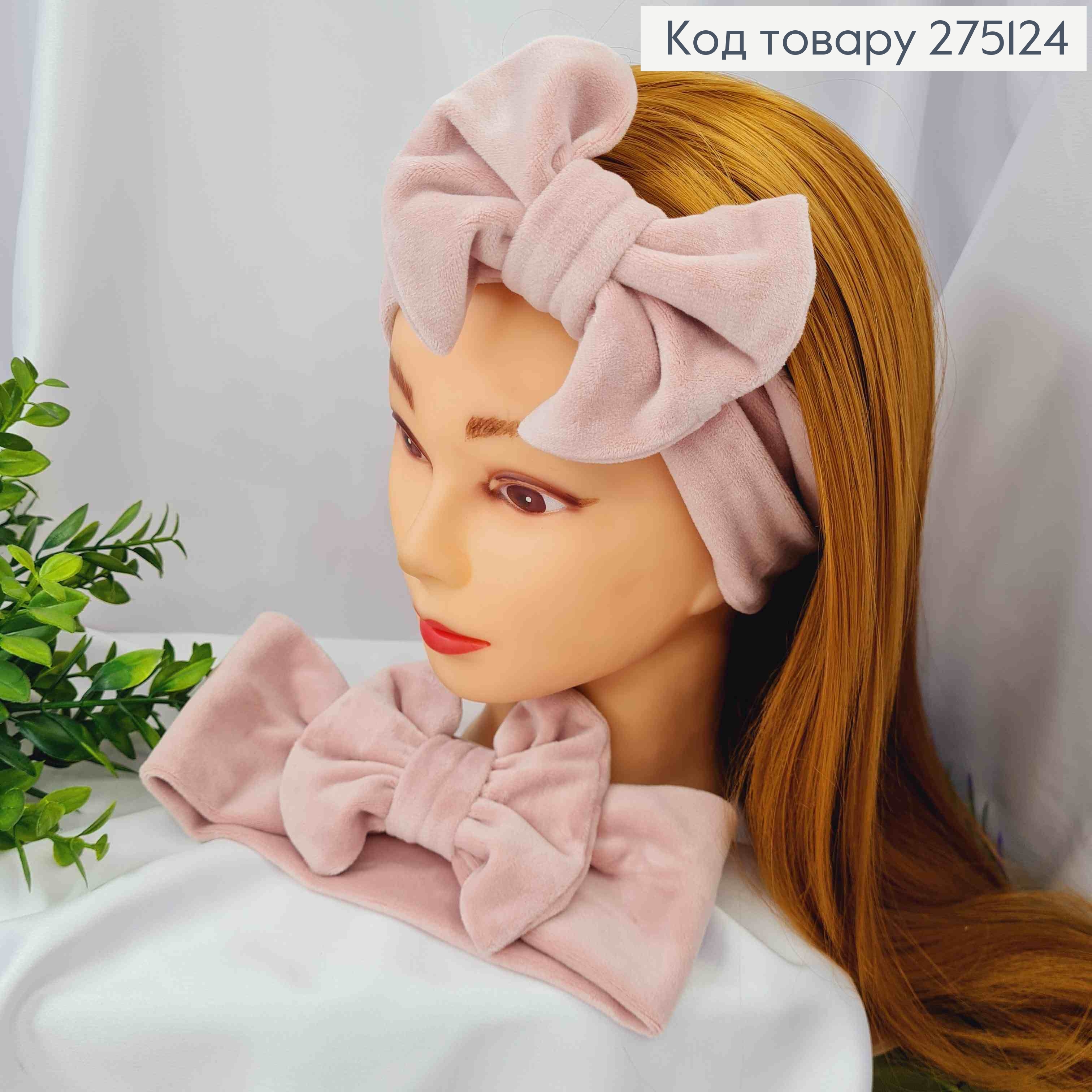 Пов'язка Бант, м'який велюр, дитячна, Ніжно-Рожева, 20*9см, ручна робота, Україна