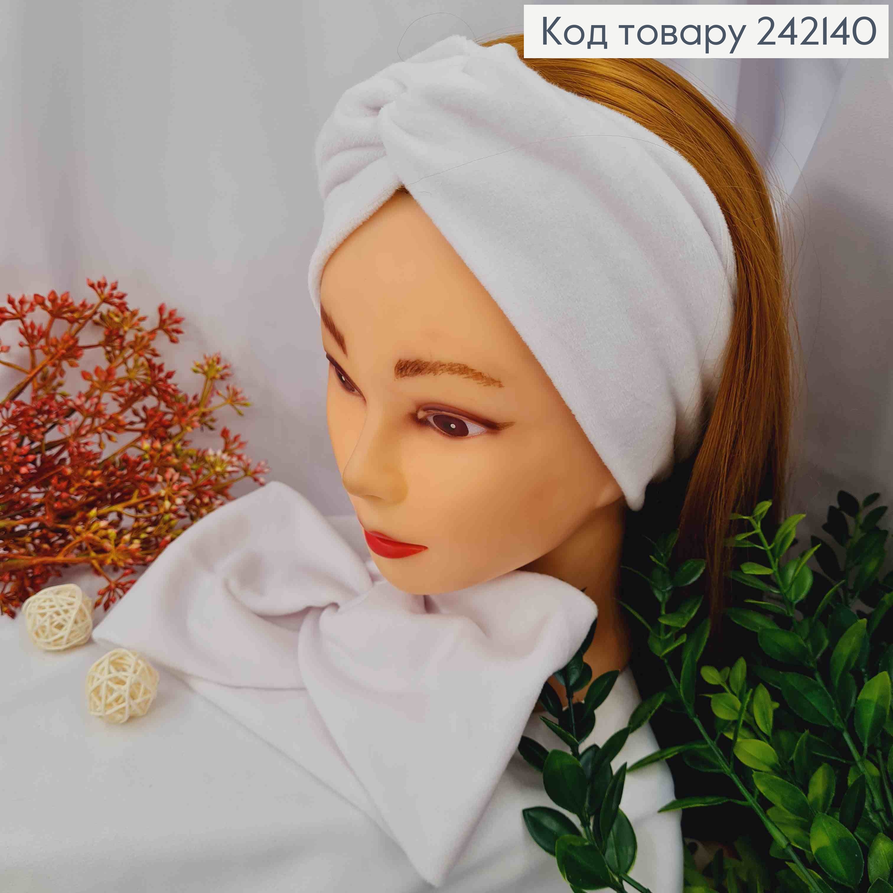 Пов'язка дитяча, чалма, м'який велюр, БІЛОГО кольору, 33*9см, ручна робота, Україна 275204 фото