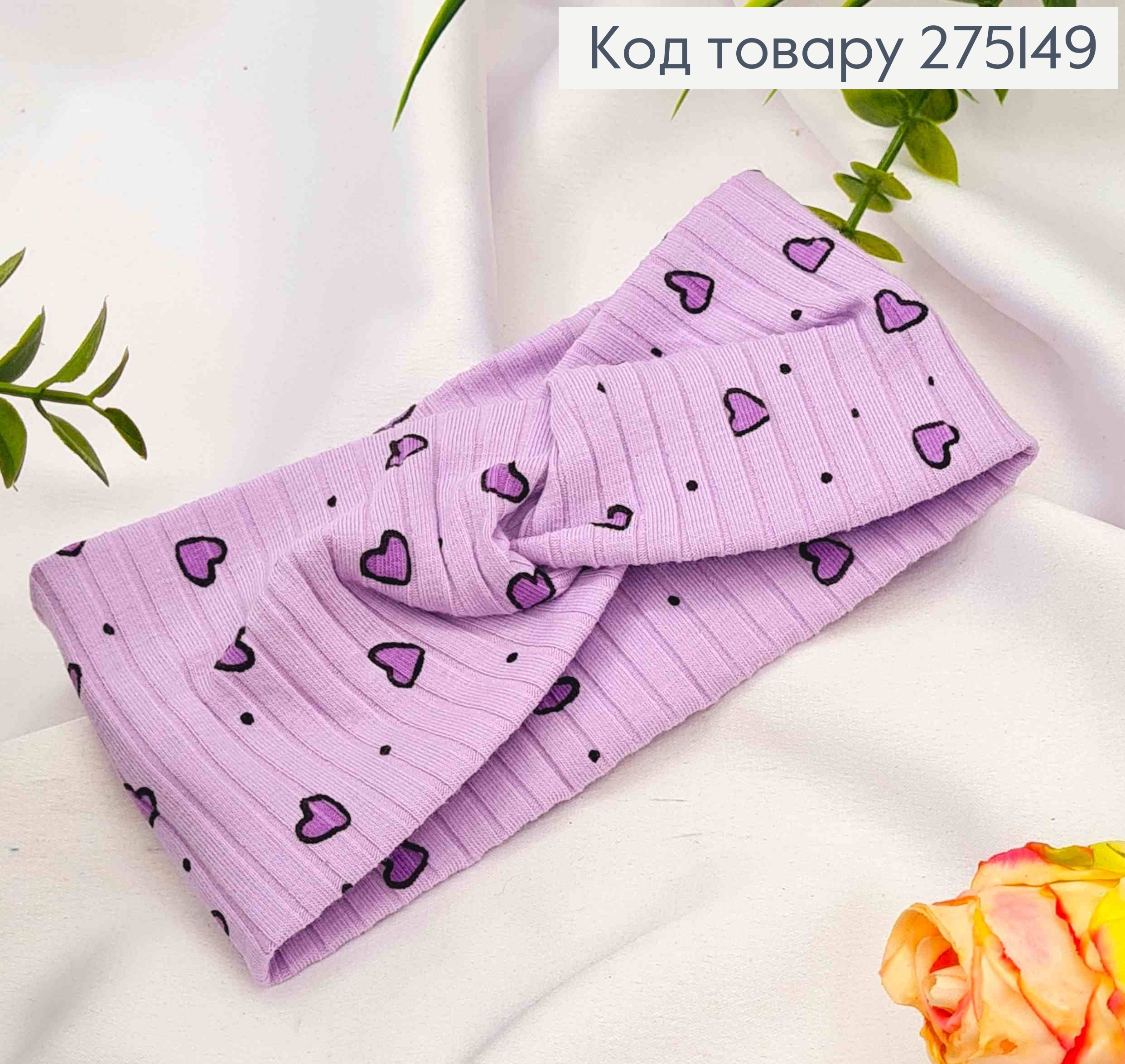 Пов'язка чалма малютка, ФІОЛЕТОВОГО кольору з принтом "Серце", діаметр 32*8см, ручна робота, Україна