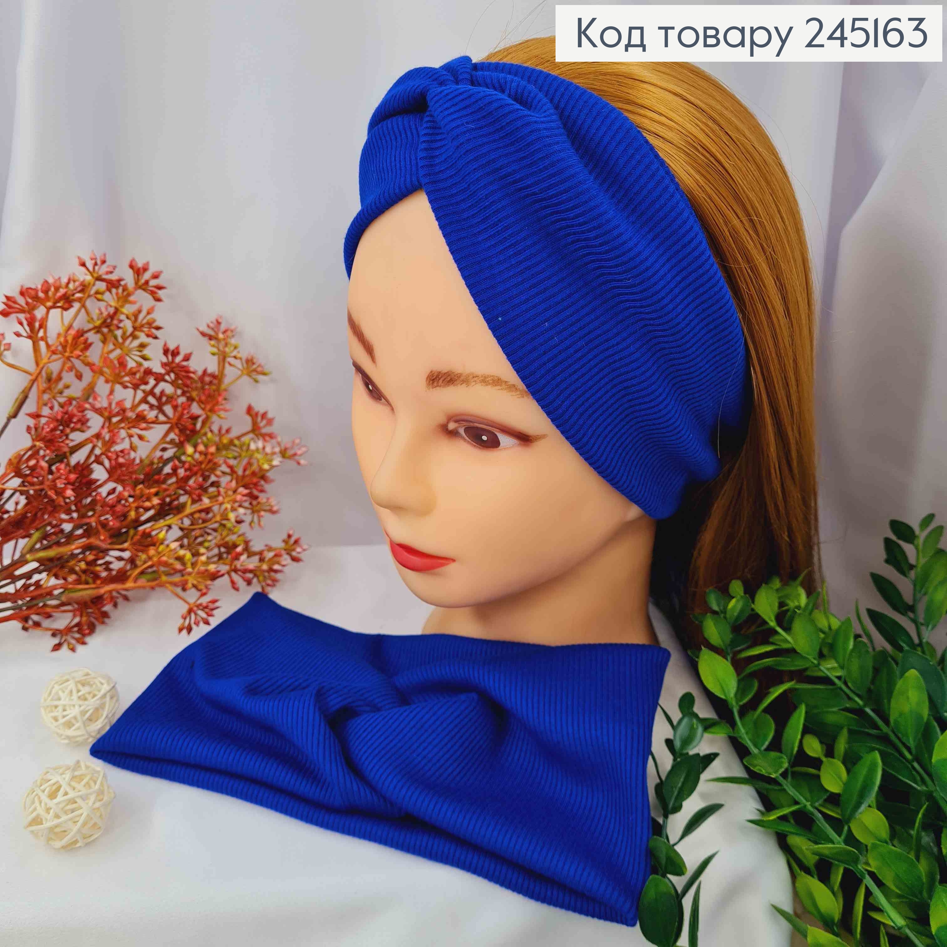 Пов'язка чалма, рубчик, якісна, СИНЬОГО кольору, діаметр 46см, шир. 11см, ручна робота, Україна