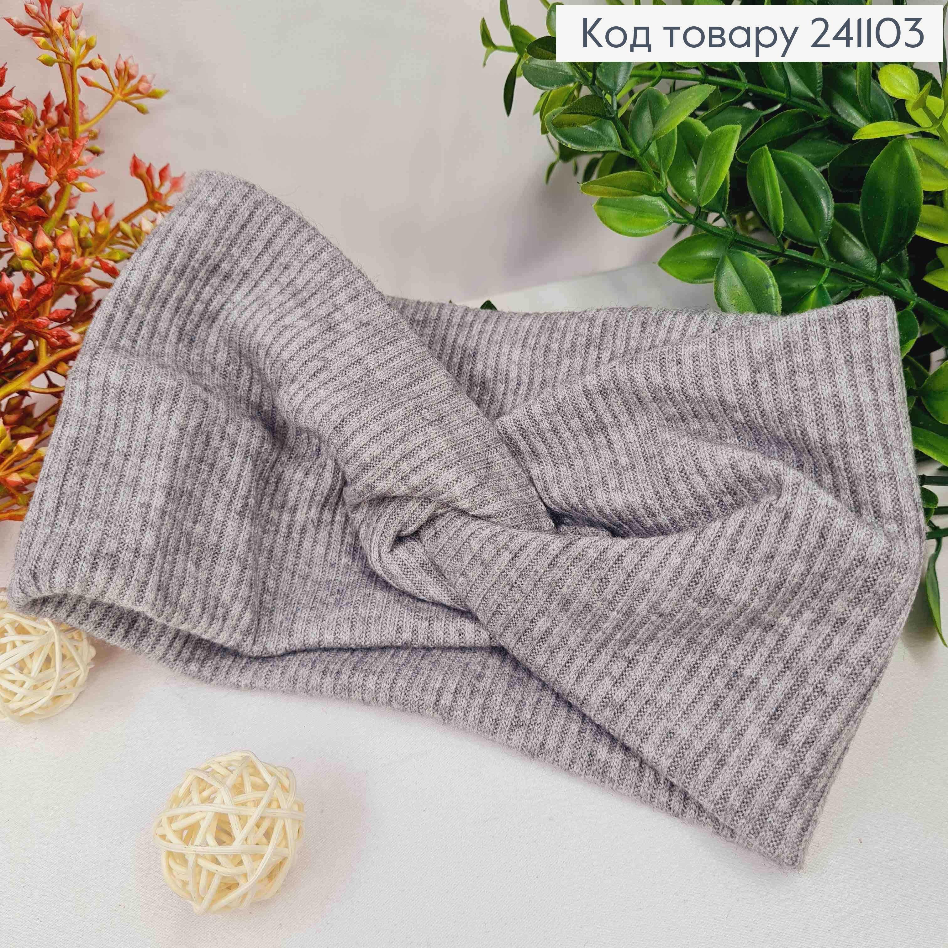 Пов'язка чалма, "кролик", зигзаг, СІРОГО кольору, 42*11см, (дуже мякенька) ручна робота, Україна 275212 фото