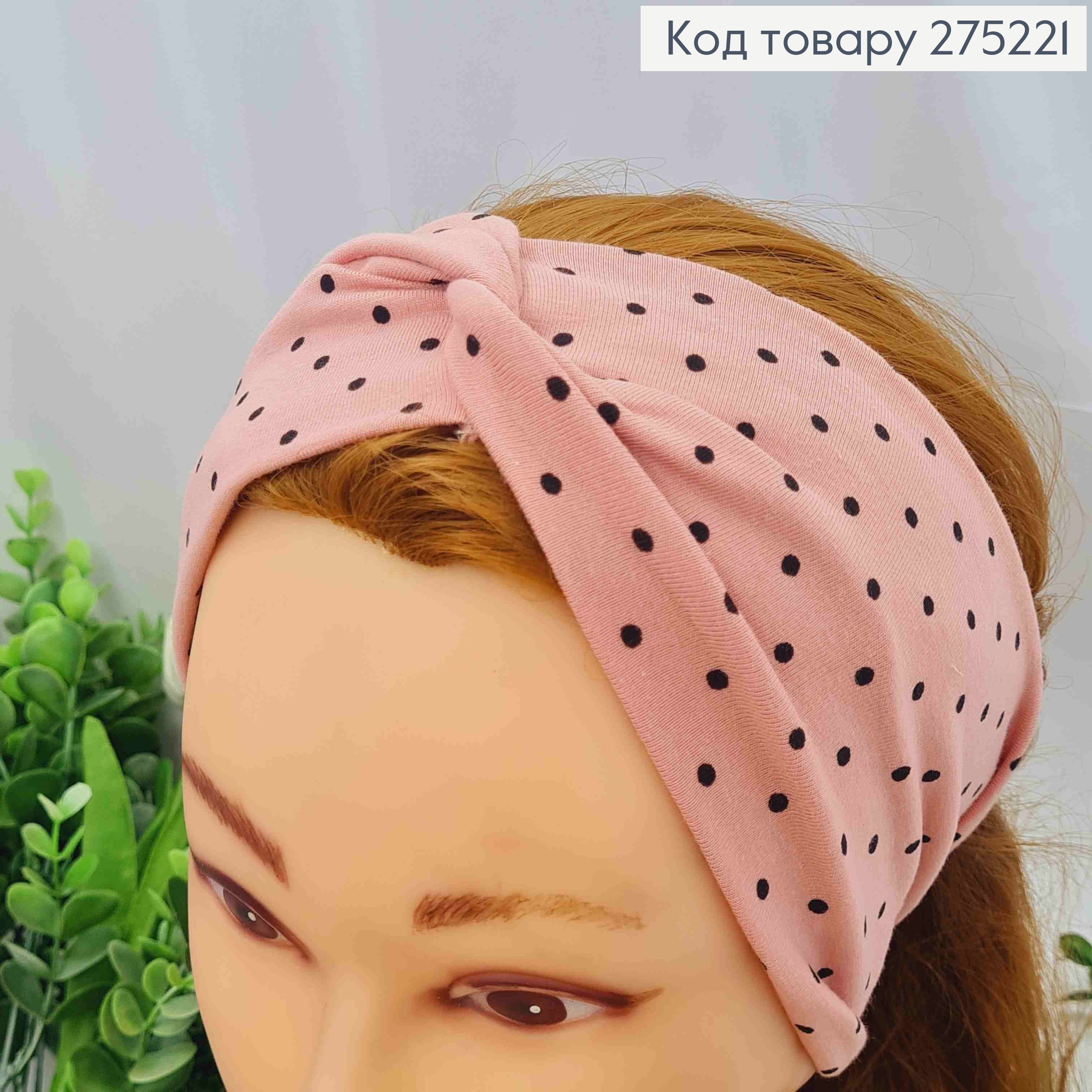Пов'язка чалма, трикотаж дитяча, РОЖЕВА ПУДРА в горошок, 38*9см, ручна робота, Україна