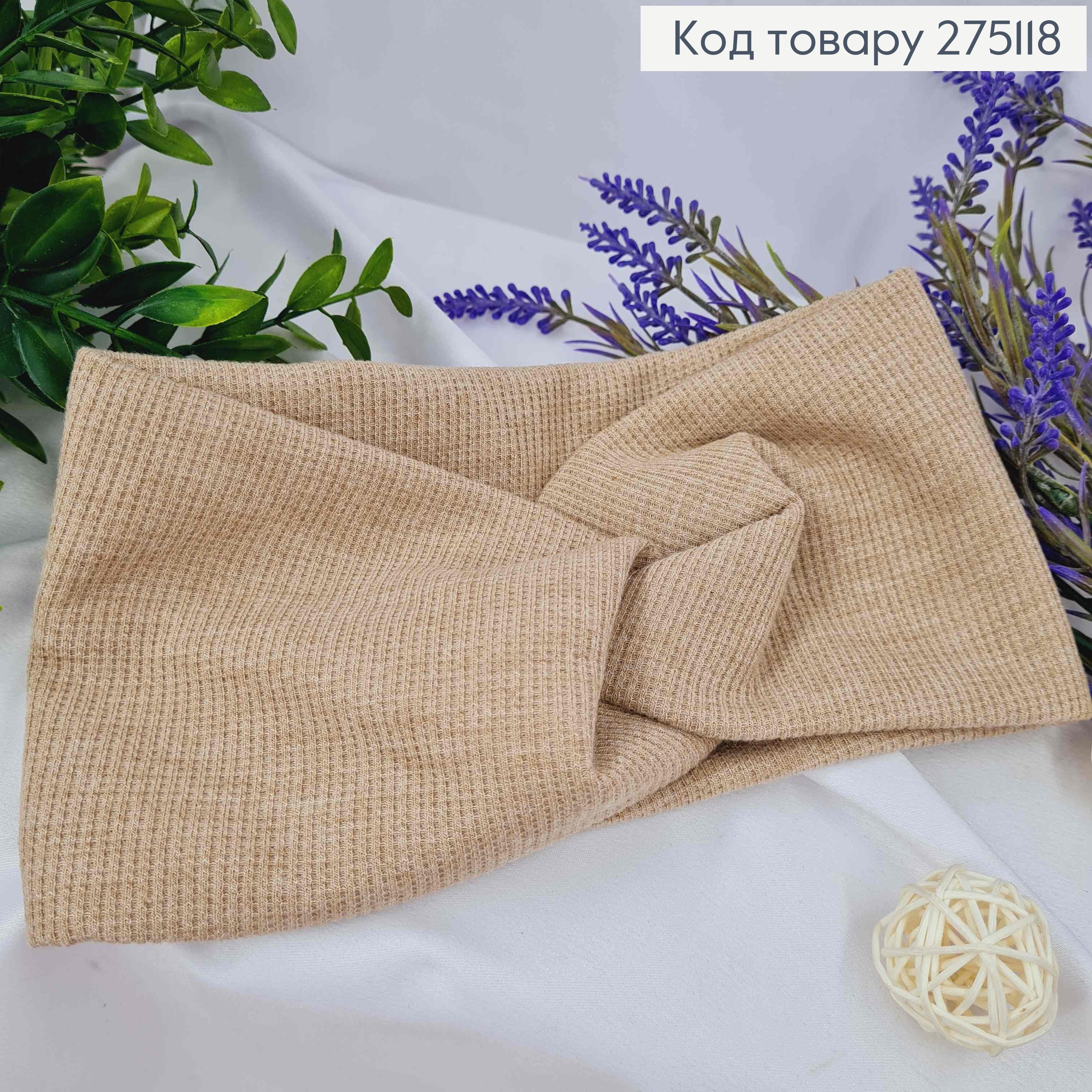 Пов'язка чалма, вафелька, Темно-Бежева, діаметр 43см, ширина 11см, ручна робота, Україна