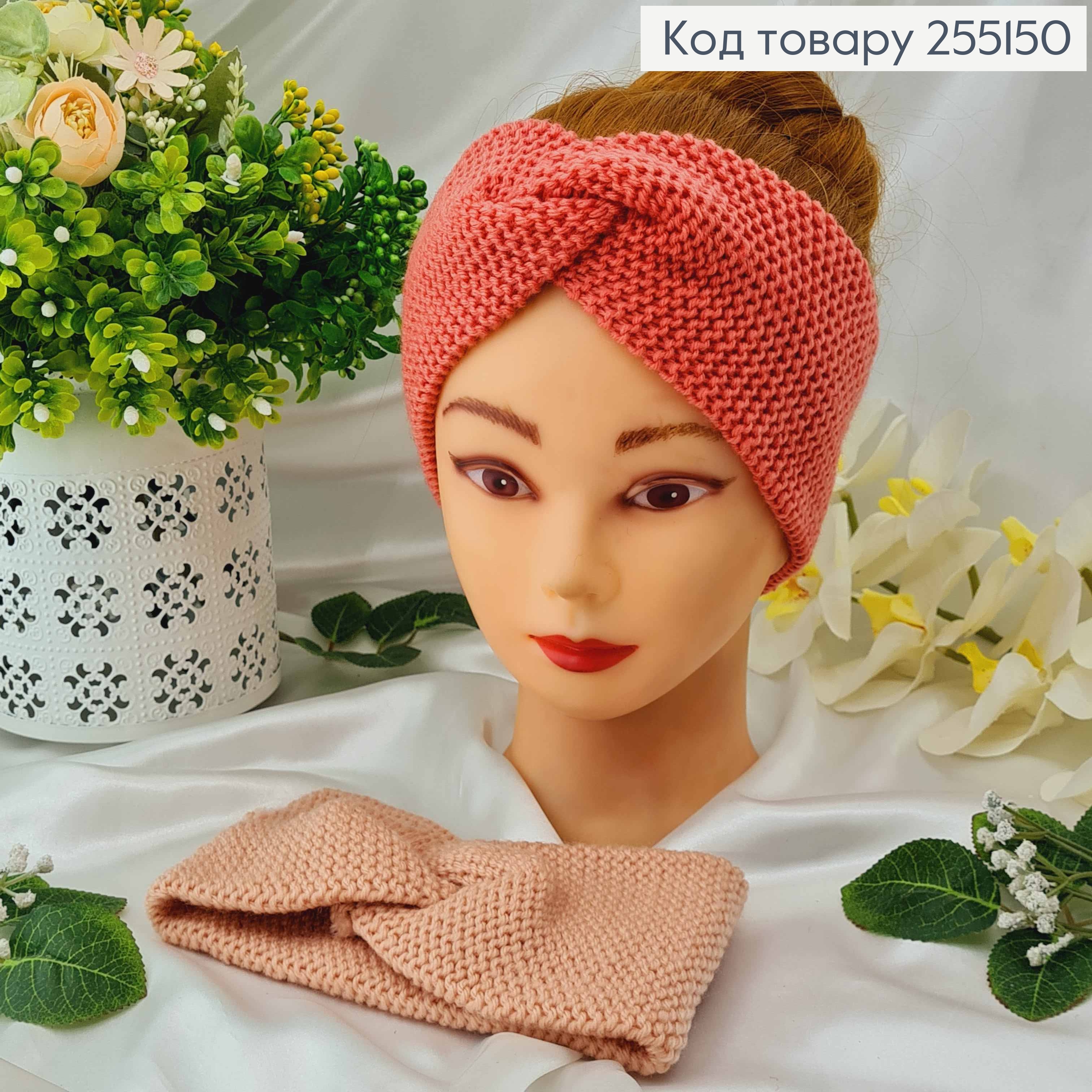 Пов'язка чалма, В'язана, 20*9 см, кольори Рожева/Персикова в асорт.