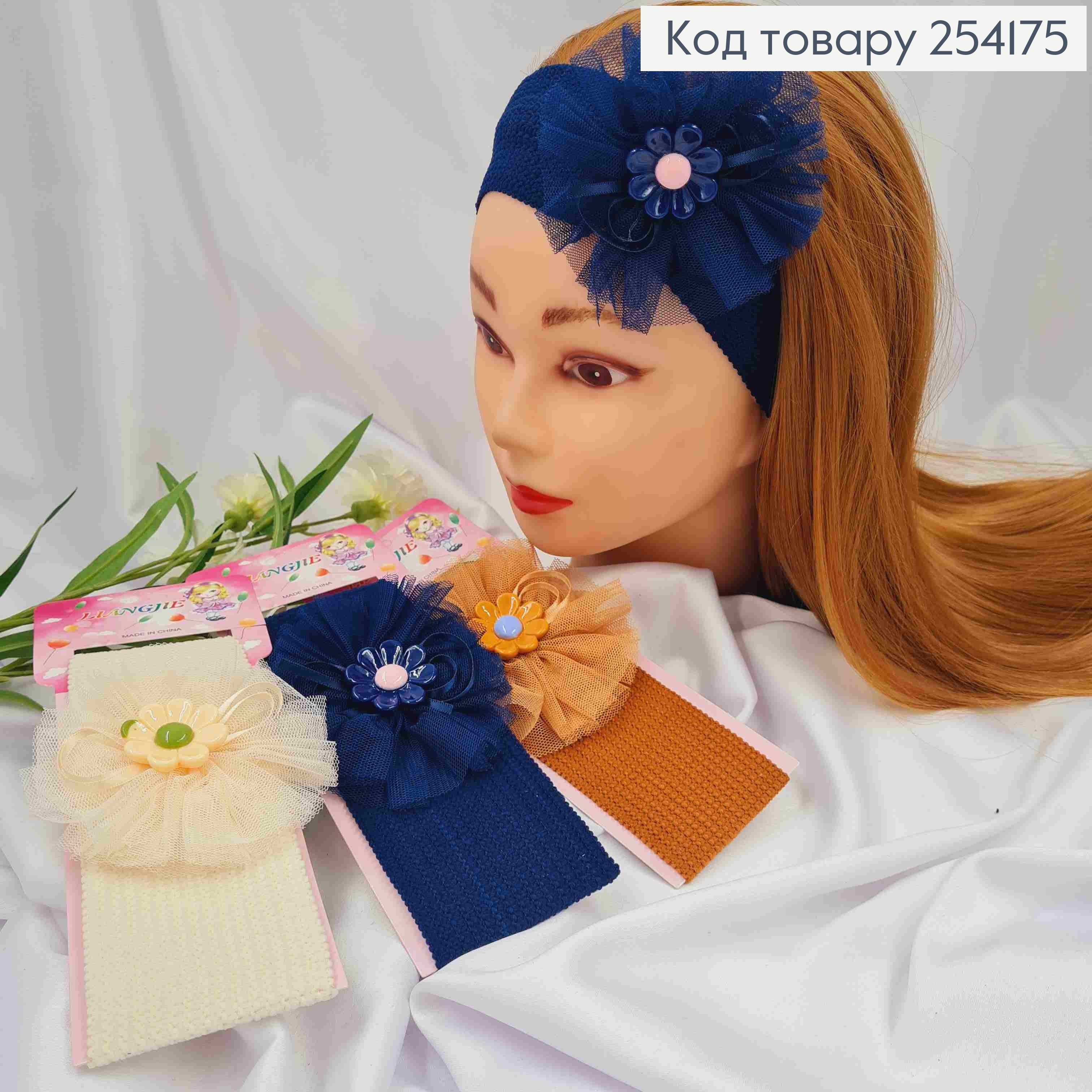 Пов'язка дитяча, БАНТИК з КВІТКОЮ, шир 5,5см, довж 32, Синя/Біла/Коричнева кольори в асортименті