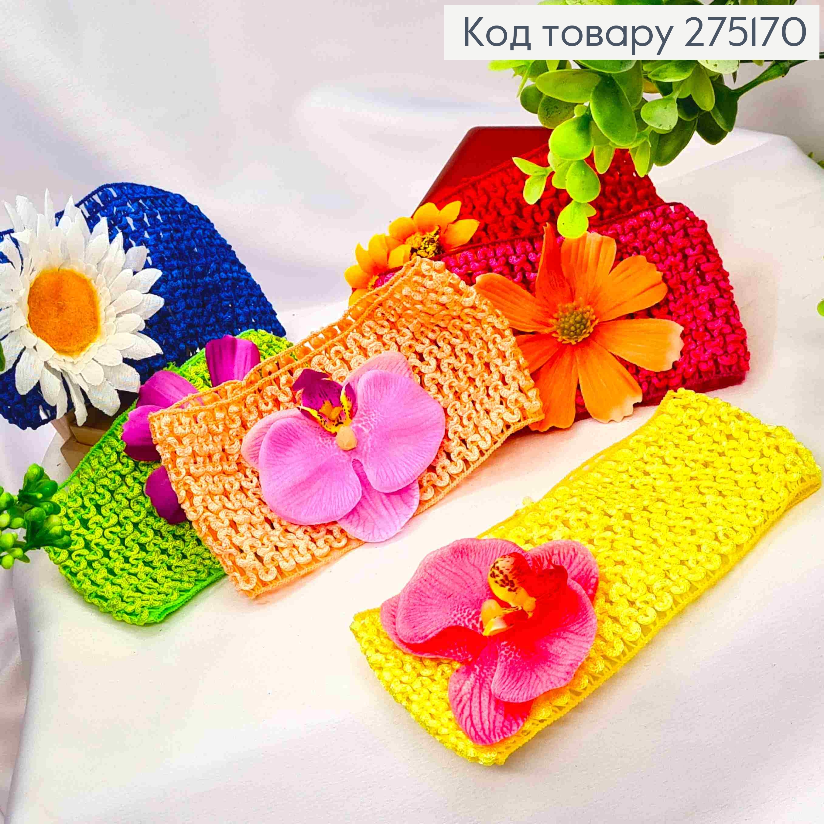 Пов'язка в'язана з Квіточками, розміром 30*6,5см, Яскраві кольори в асортименті