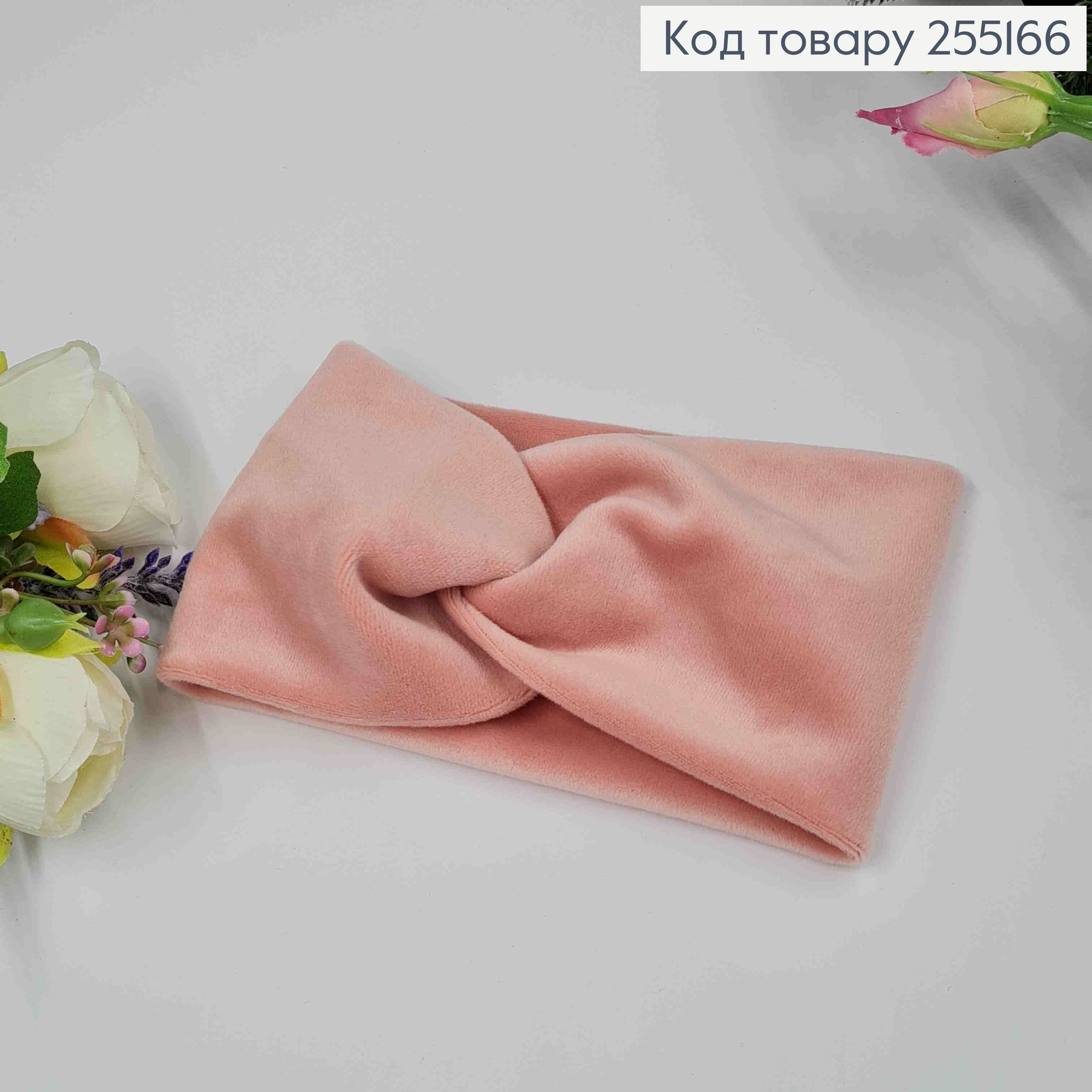 Пов'язка дитяча, чалма, м'який велюр, БЛІДО-РОЖЕВОГО кольору, 33*9см, ручна робота, Україна 275205 фото