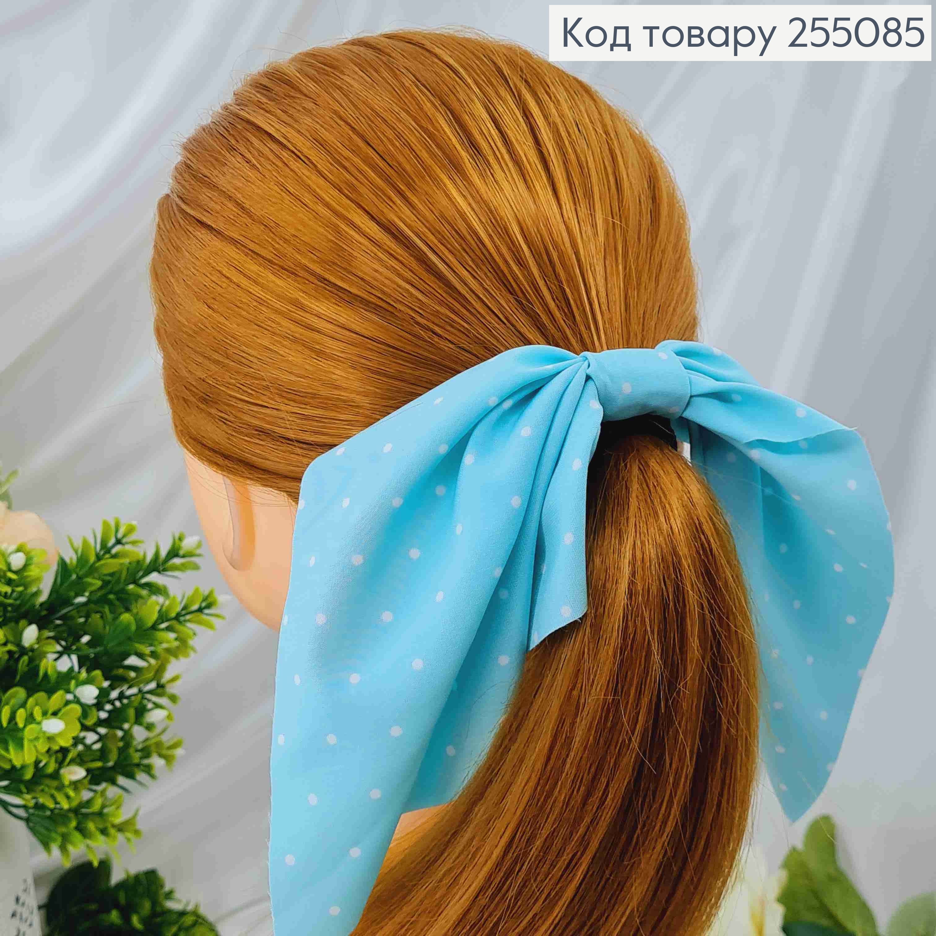 Резинка 5см, Твіллі з бантиком, Бірюзового кольору, в горошок, довж.16см