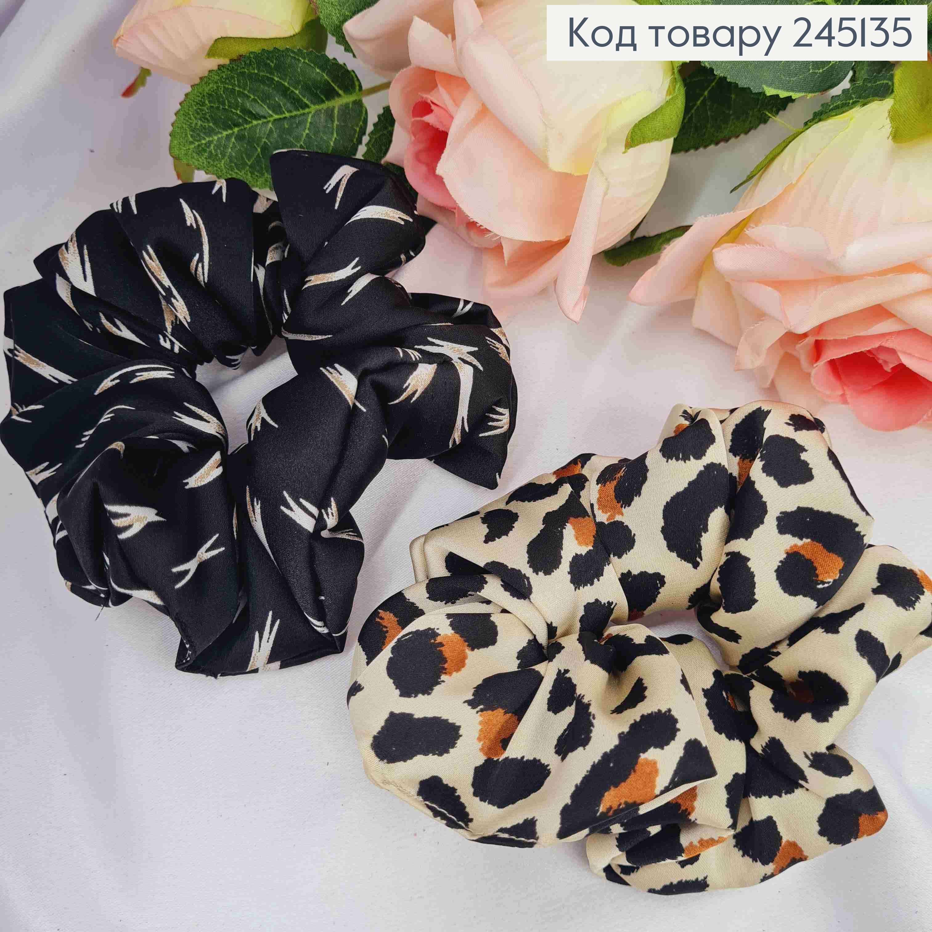 Резинка об'ємна з Леопардовим принтом по краям, 11см, Кольори в асортименті 241112 фото