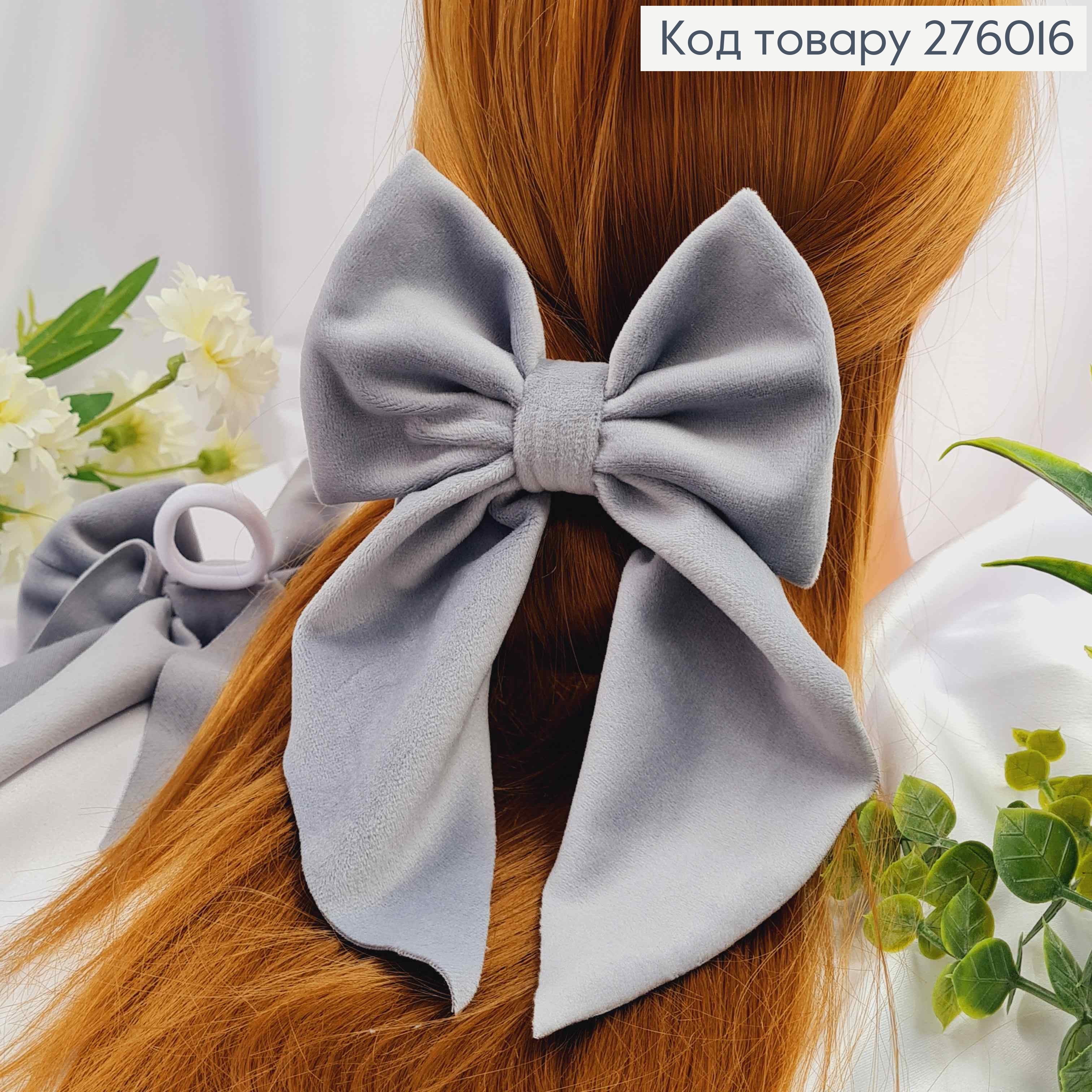 Резинка, БАНТ велюр, СІРИЙ, розмір 13*20см, ручна робота, Україна