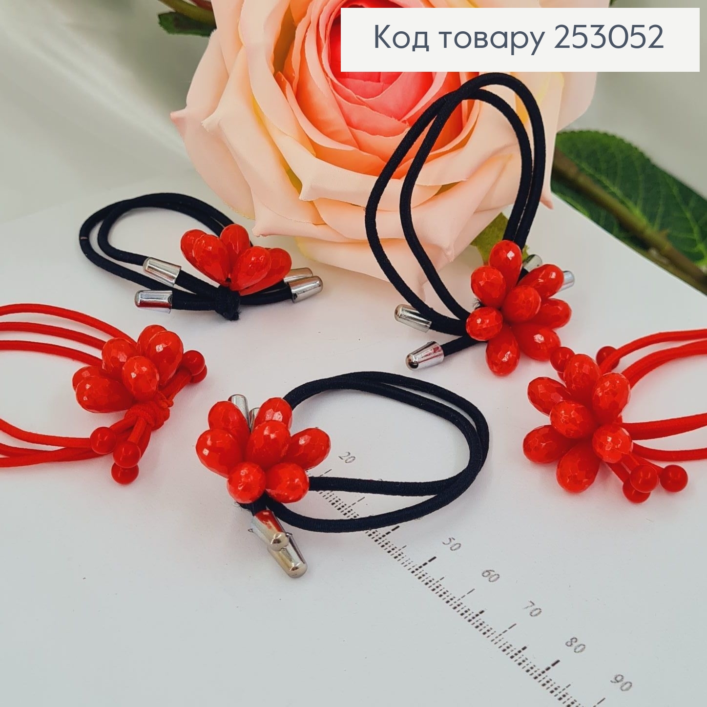 Резинка червона/чорна з Червоними бусинками КВІТКА