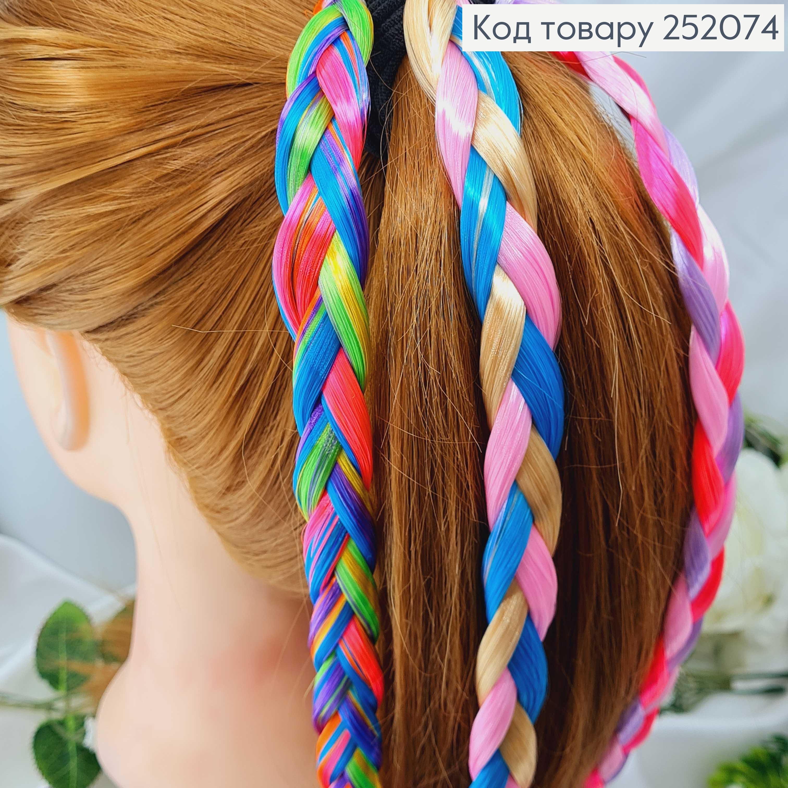 Резинка чорна мікрофібра 5см з ТРИКОЛІРНИМИ косичками 35см в асорт. (яскраві)