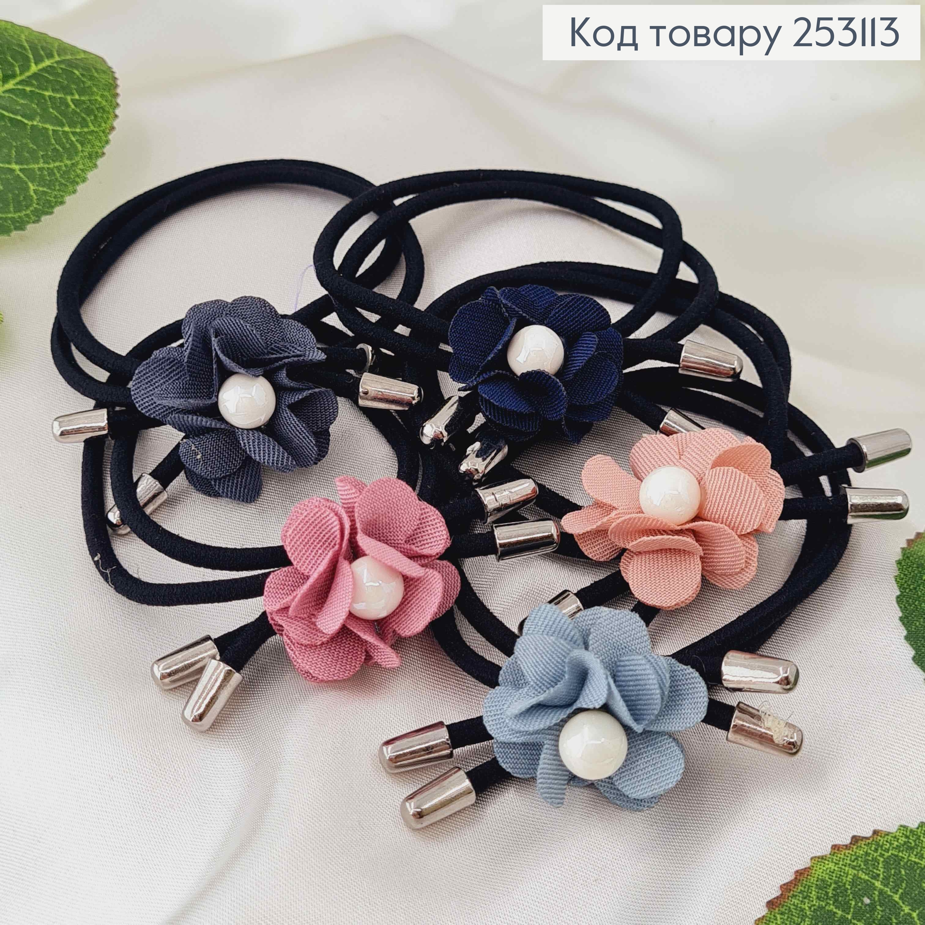 Резинка черная двойная, с цветочком в асорт. и жемчужиной