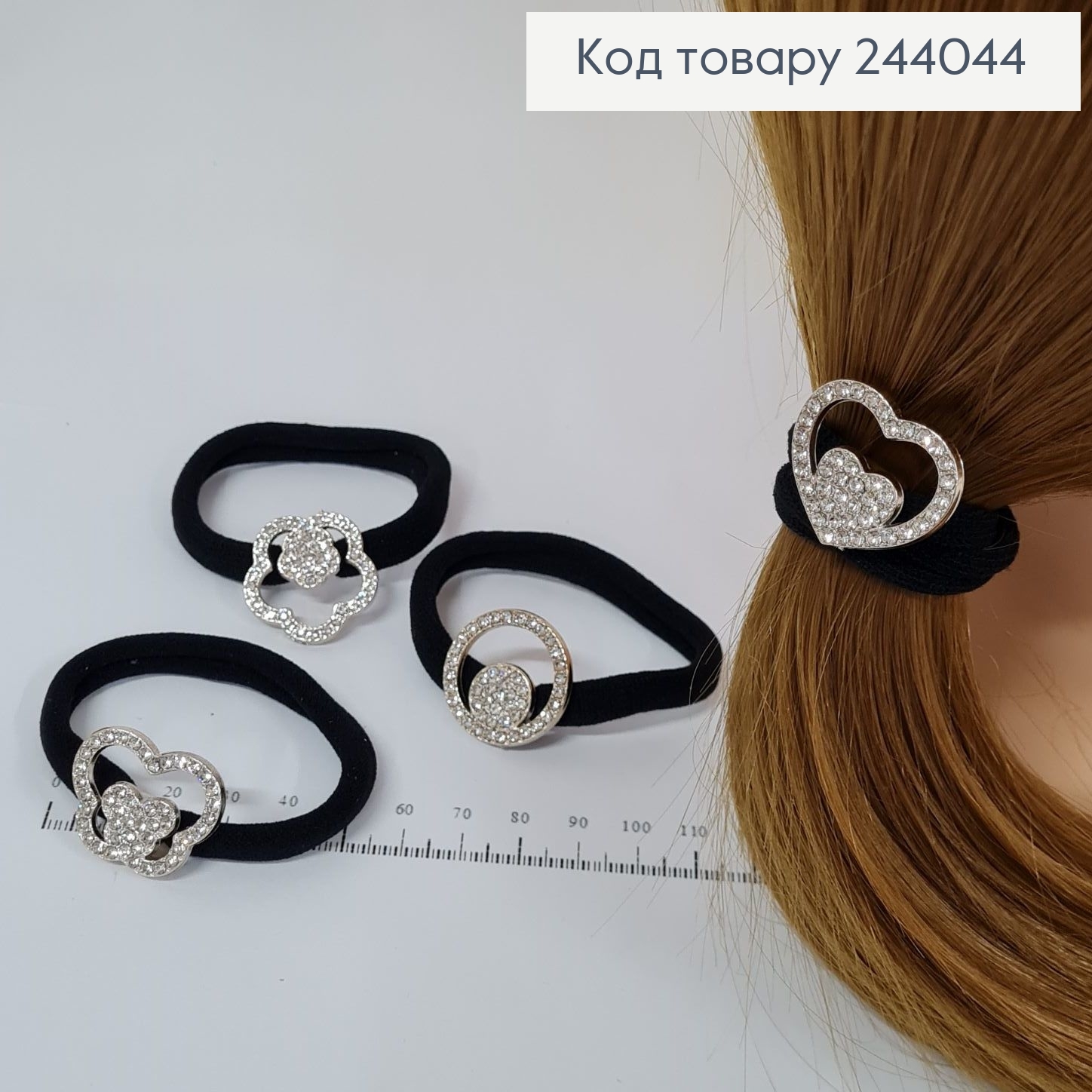 Резинка на планшетці (3шт) Шнурок з Бусинками "Сердечка", 5см, Кольори в асортименті 244204 фото
