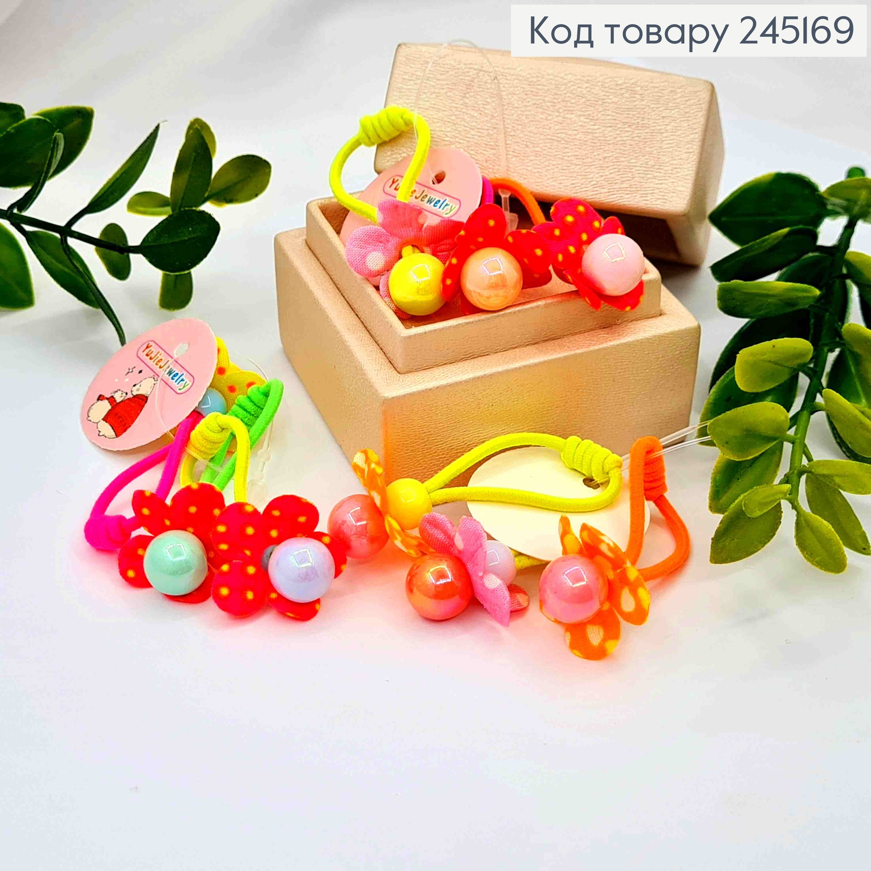 Резинка дитяча (30шт/уп), з Бусинками та Квітками, Яскравих кольорів, 3см