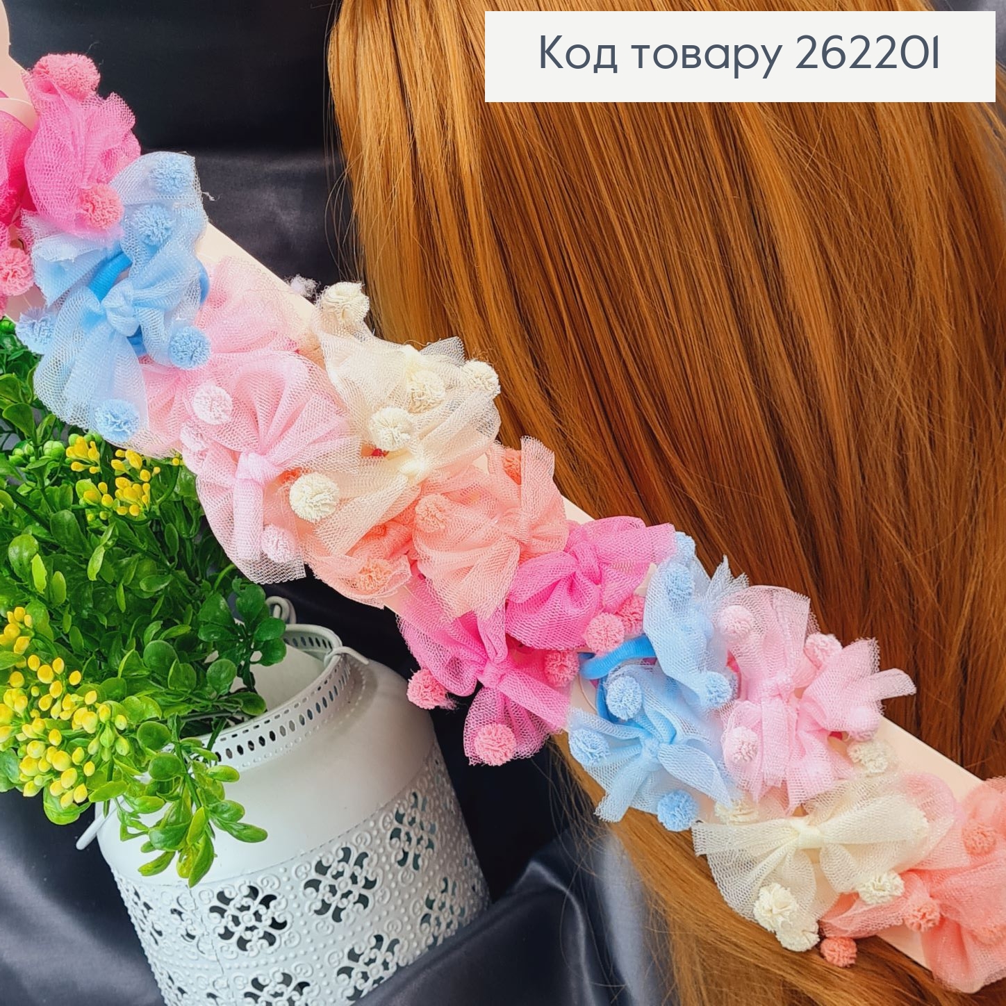 Резинка дитяча бантик фатин з кульками 20шт в асорт