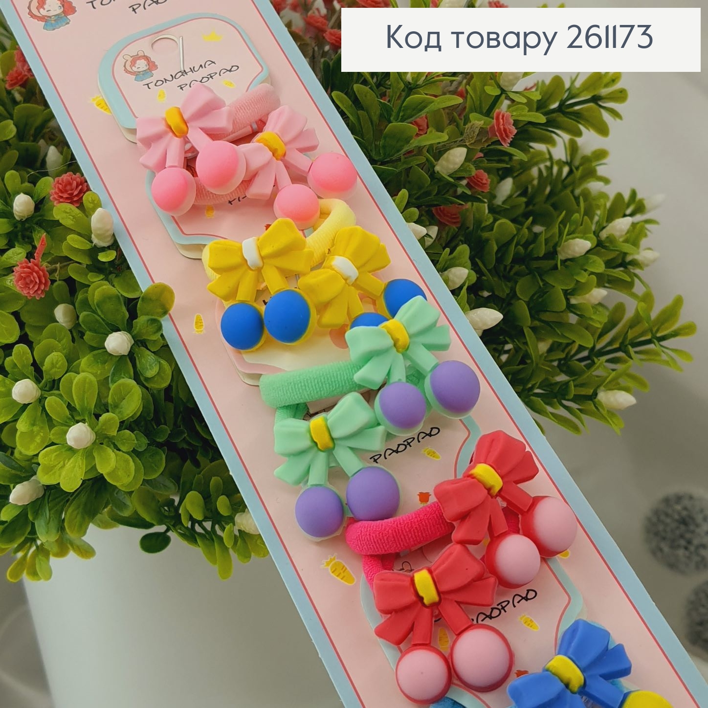 Набір резинок (20шт) "Ведмежата" з Бусинами та Бантиком, Пастельні кольори, резинка 2,5см, бант 5см 261389 фото