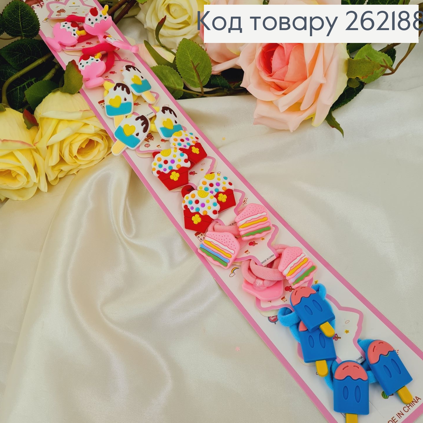 Резинка дитяча мікрофібра Морозиво, тістечка (силікон) в асорт. 20шт