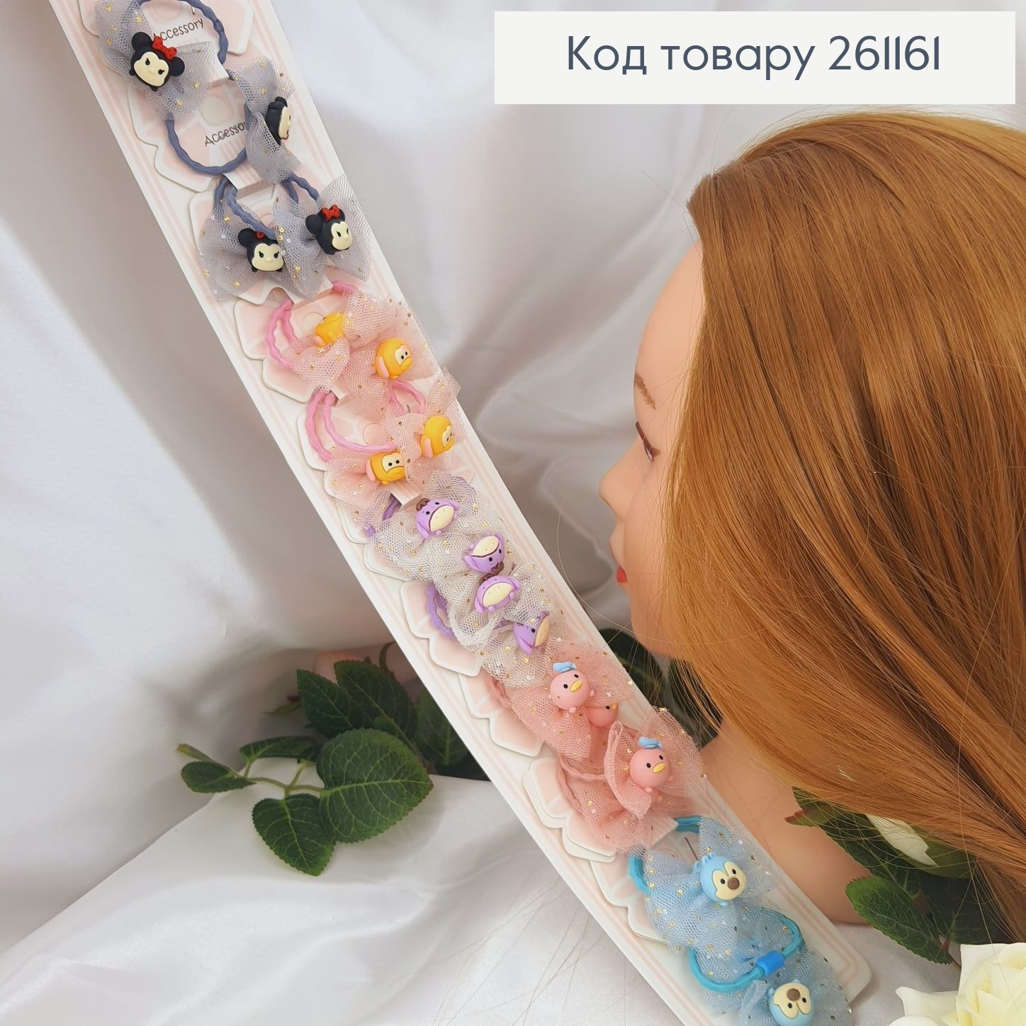 Набір резинок (20шт) "Міні Маус" з Перлиною та паєтками,Пастельні кольори, резинка3см, МініМаус3,5см 261385 фото