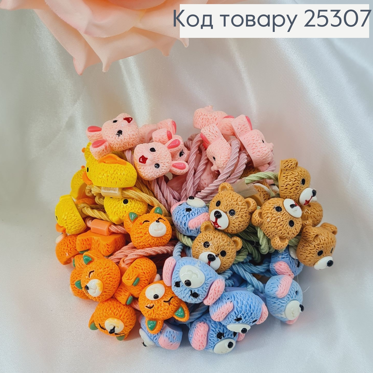 Набір резинок (20шт) "Тваринки" з бантиком, Пастельні кольори, резинка 3см, тваринки 2,5см 261387 фото