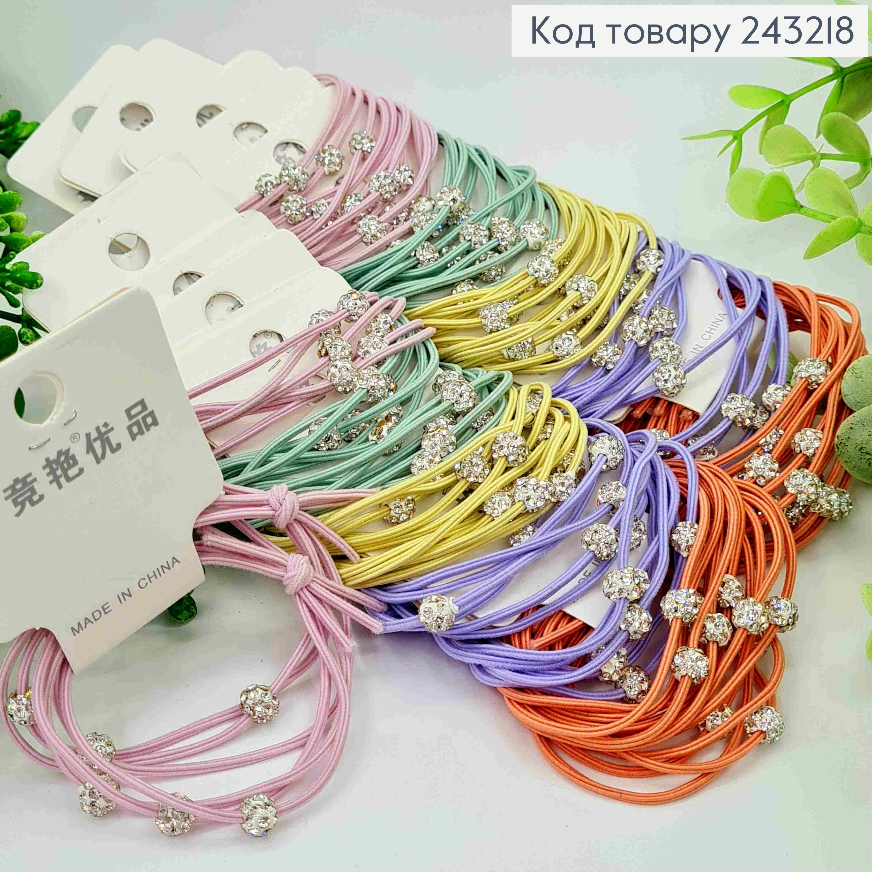 Резинка на планшетці (2шт) Жатка/ Шнурок з Бусиною Каменем, Пастельні кольори, діаметр 6см 253235 фото