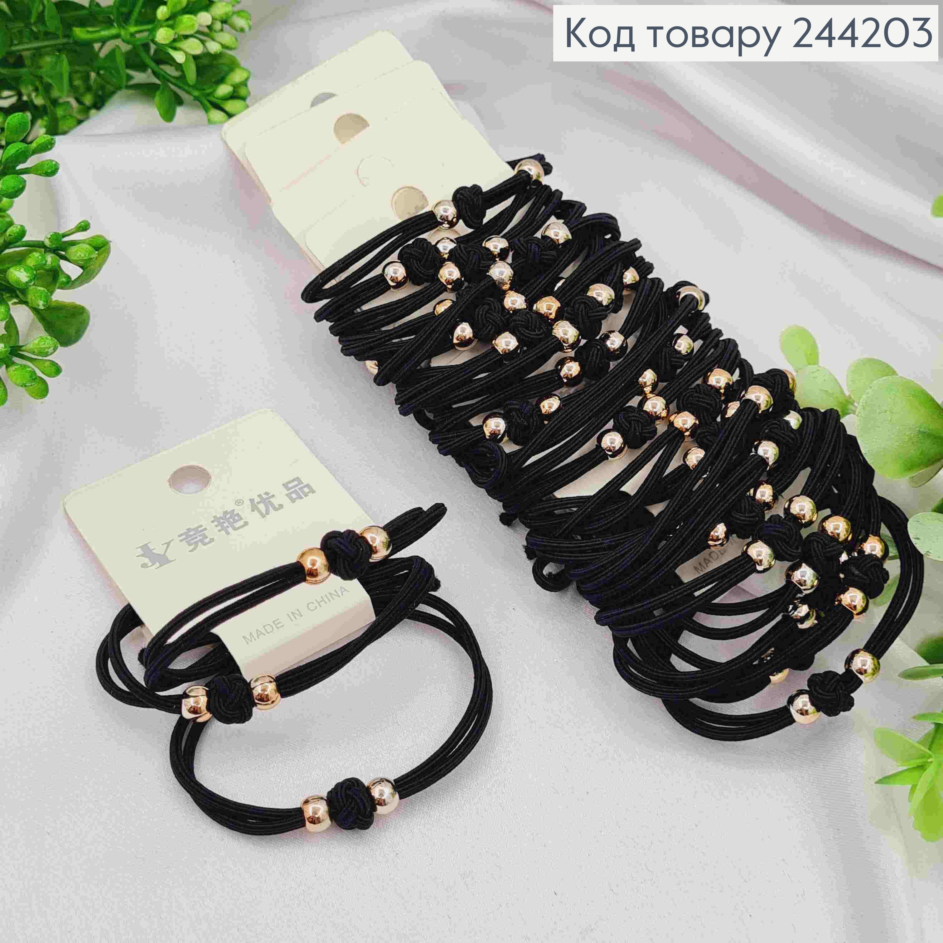 Резинка на планшетці (3шт) Шнурок з Бусинками, 5см, Чорного кольору
