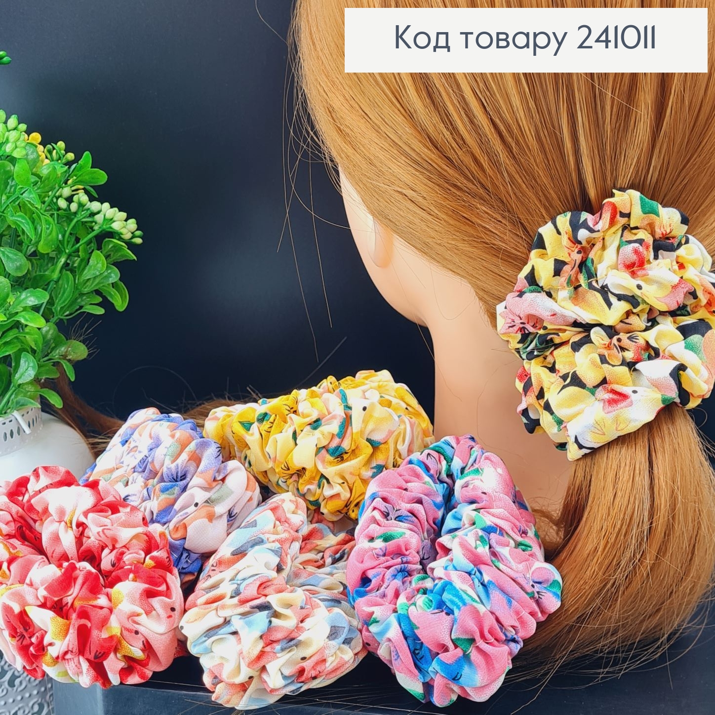 Резинка жатка-об'ємна з принтом "Квітки",  Пастельні кольори в асортименті 252140 фото