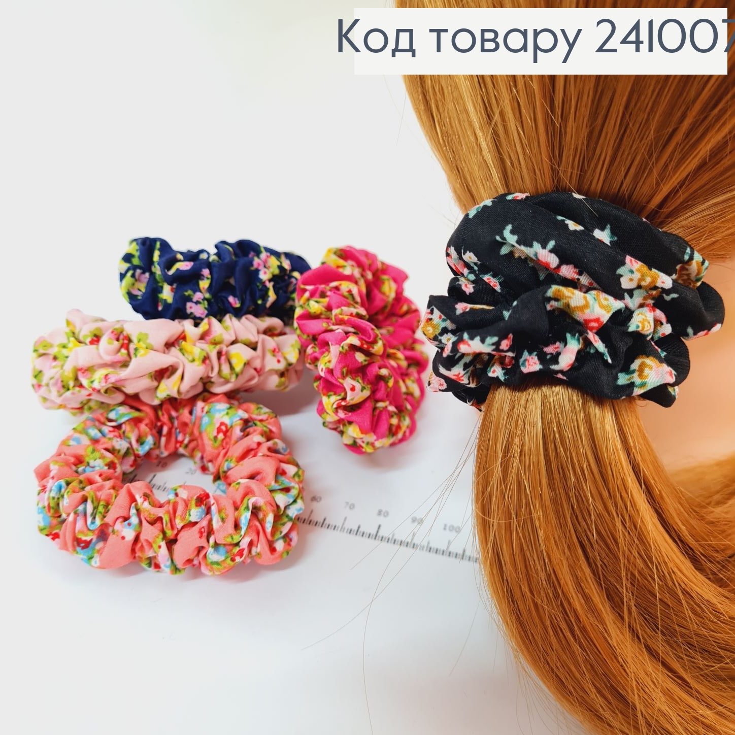 Резинка жатка-об'ємна з принтом "Квітки",  Пастельні кольори в асортименті 252140 фото