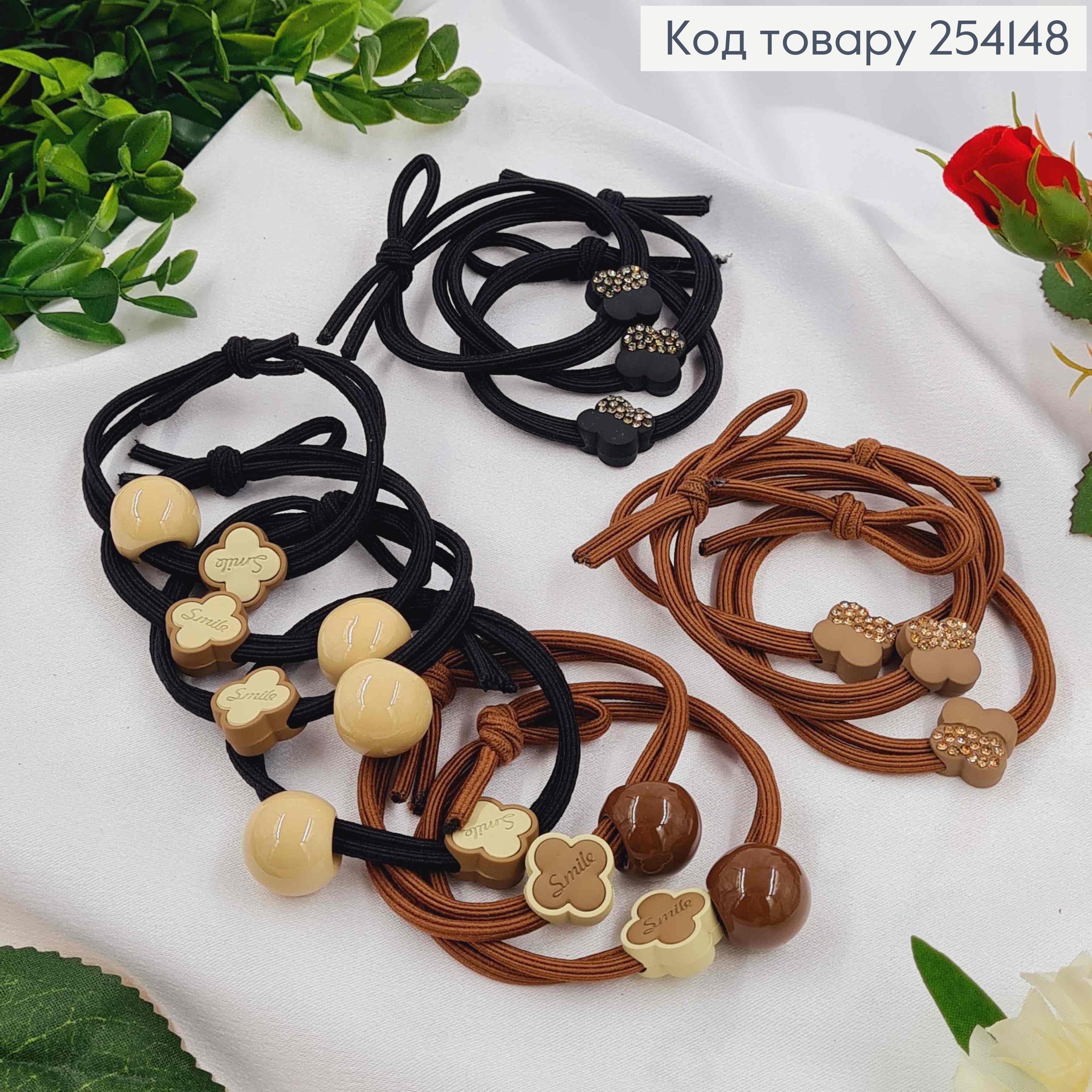 Резинка-шнурок 5см "Бусинка/ Ван клів" коричнево-чорні, запаковані по 12шт