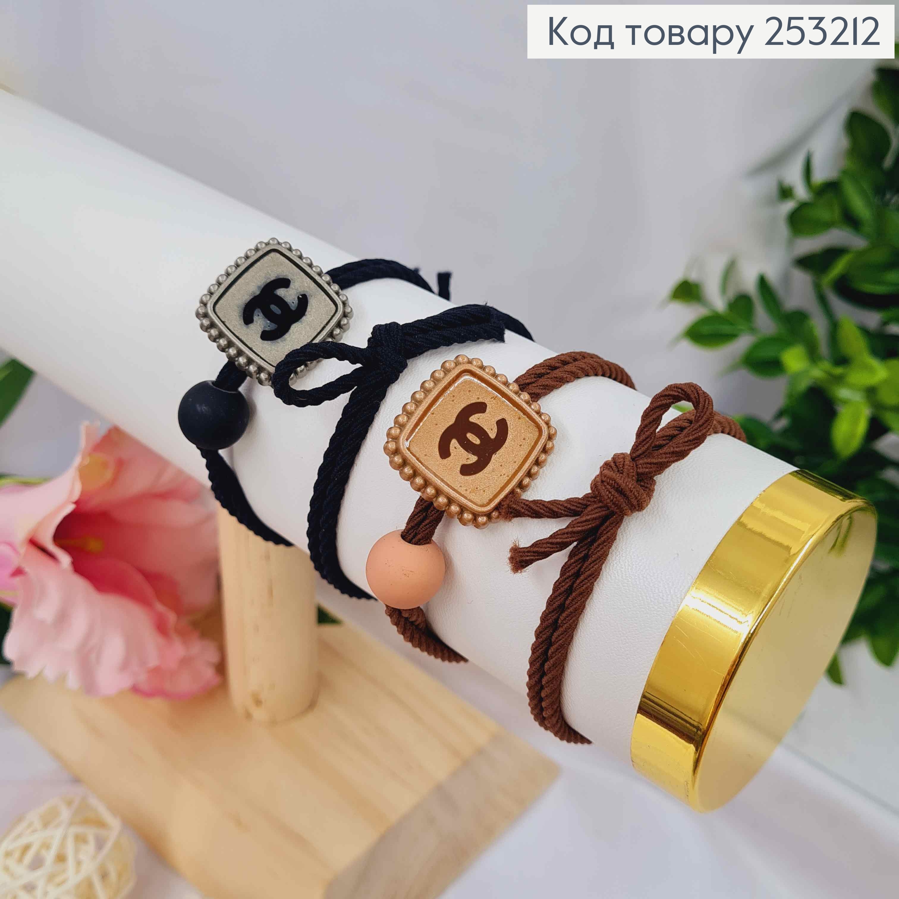 Резинка шнурок 5см, з брошкою ШАНЕЛЬ + Бусинка, Чорний/Коричневий кольори в асортименті