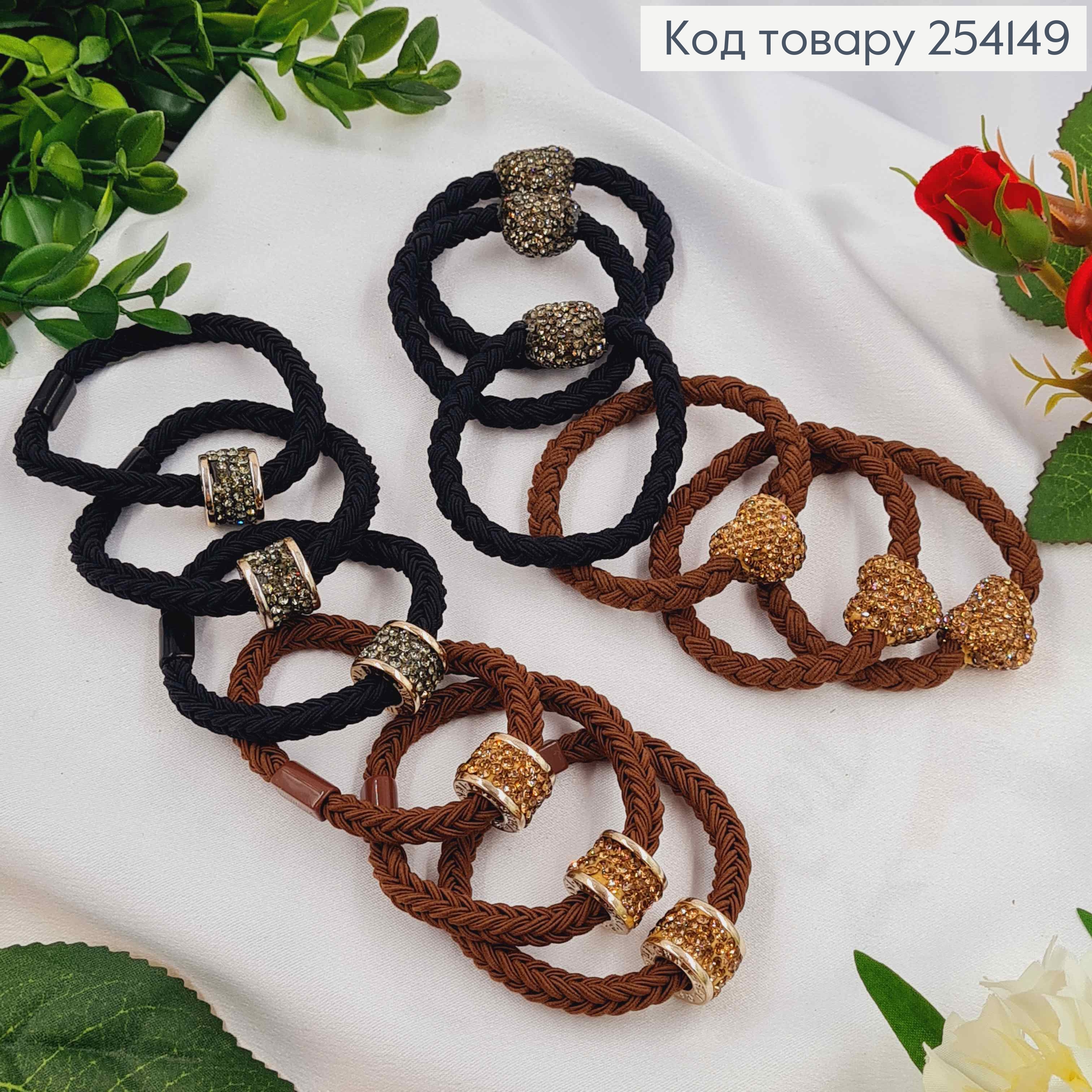 Резинка-шнурок плетена 5см "Серце / Шайбочка" в камінцях" коричнево-чорні, запаковані по 12шт