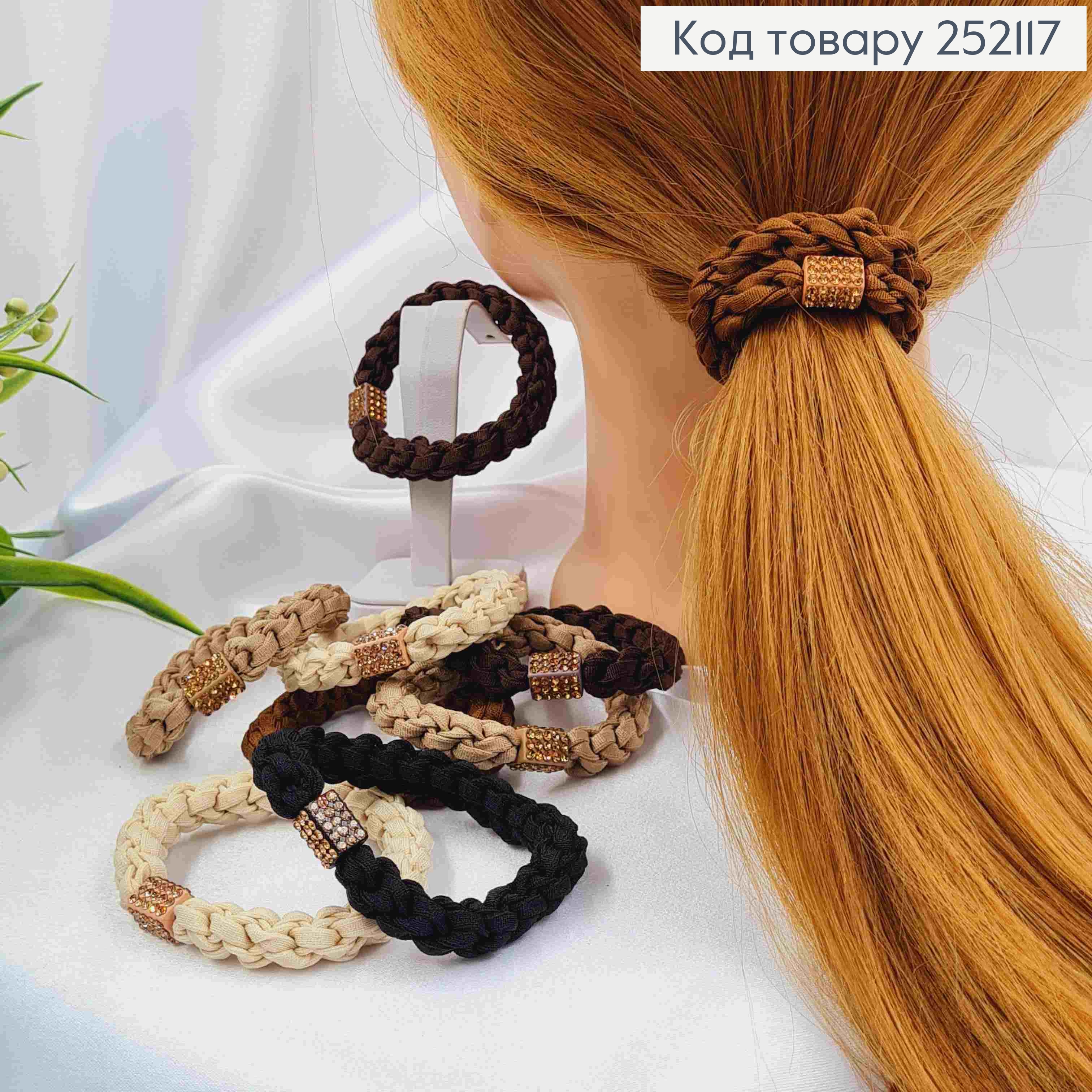Резинка на планшетці (2шт) Жатка/ Плетена з брошкою в камінцях, Пастельні кольори, діаметр 6см 253233 фото