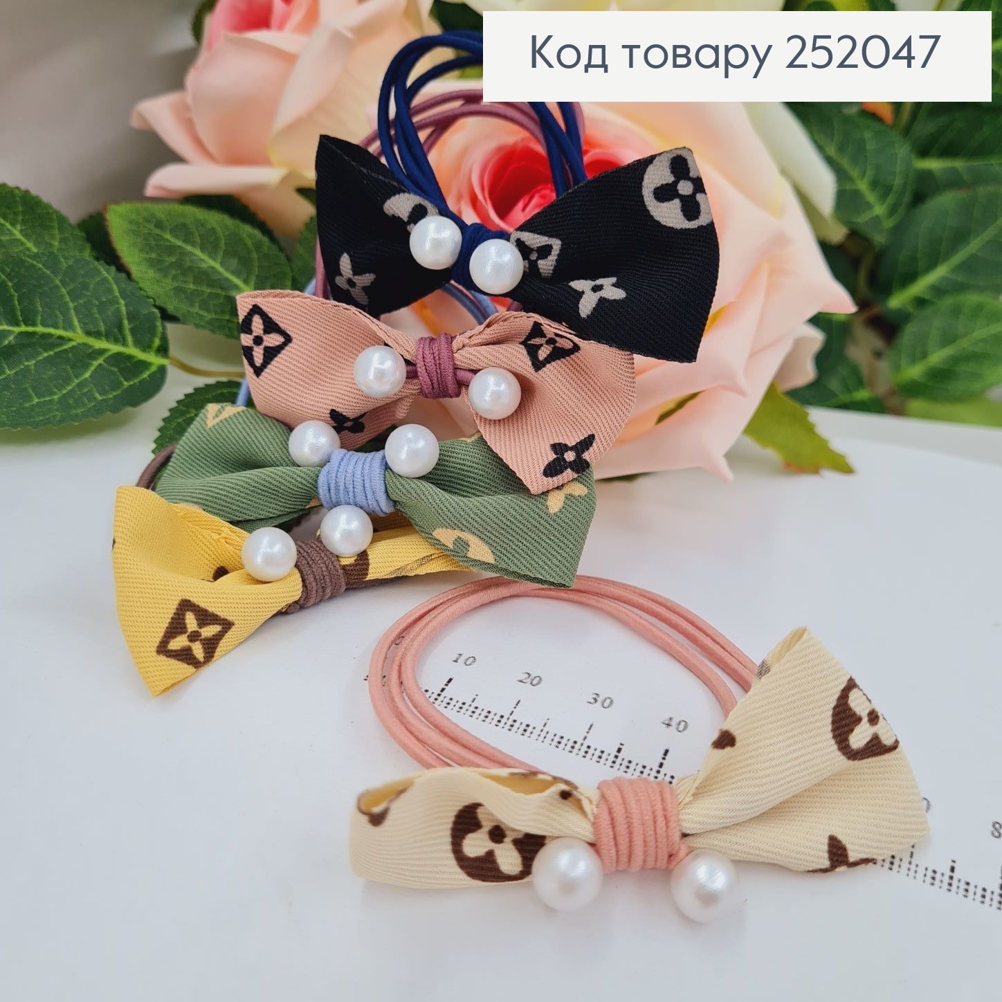 Резинка шнурок з Бантиком, бусиною та каменем, Кольори в асортименті, резинка 5,5см, бант 3,5см 253232 фото
