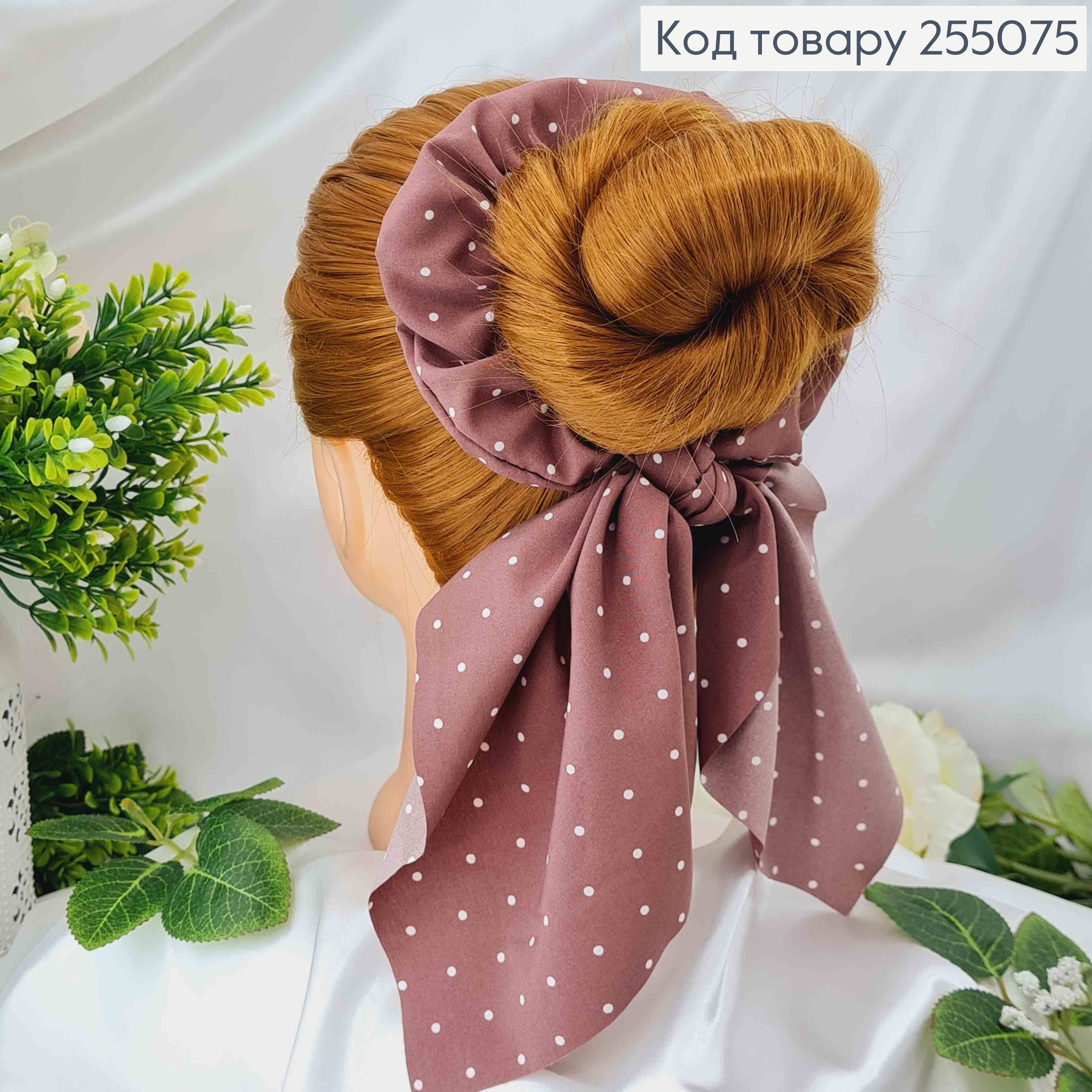Резинка, Твіллі бант, попелясто-рожевого кольору, в горошок, 13*17см