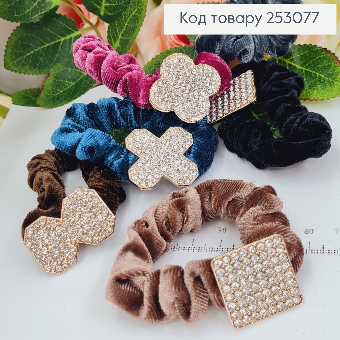 Резинка велюр з Брошкою 6см (квадрат ,сердечка, хрестик) в асор.