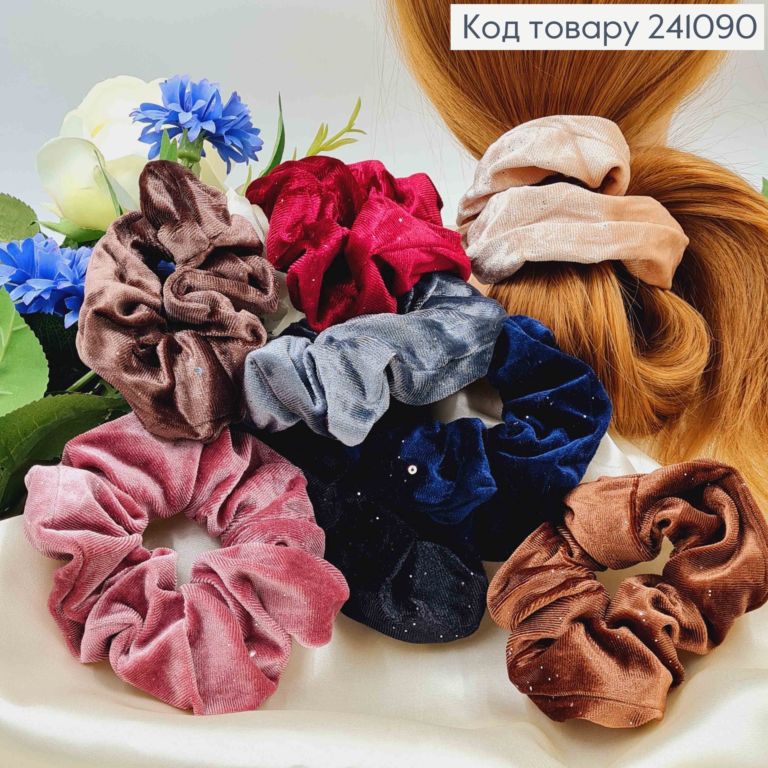 Резинка велюрова з блискітками 4см(внутрішній діаметр) 12см(зовніш.діам.), в асортименті