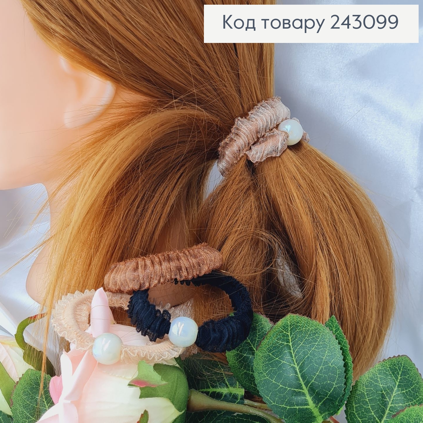 Резинка ПУШОК з Перлинками,  діаметр 7см, Кольори в асортименті 243220 фото