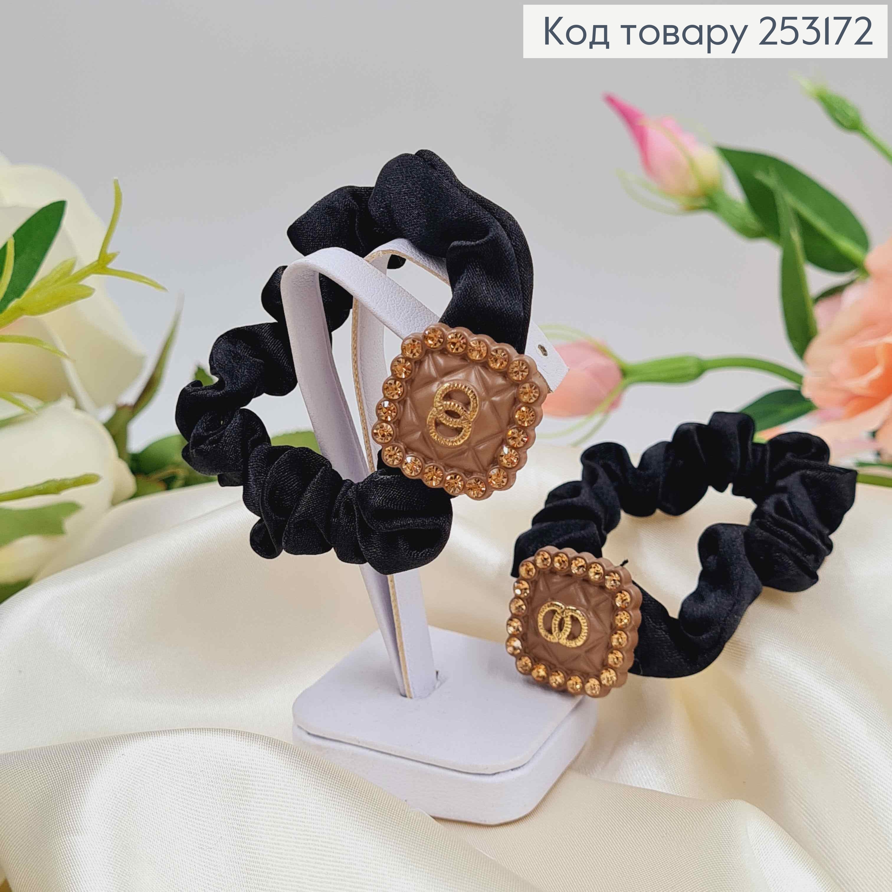 Резинка жатка 6см, Чорного кольору, з квадратною пластинкою "Гуччі" з камінцями