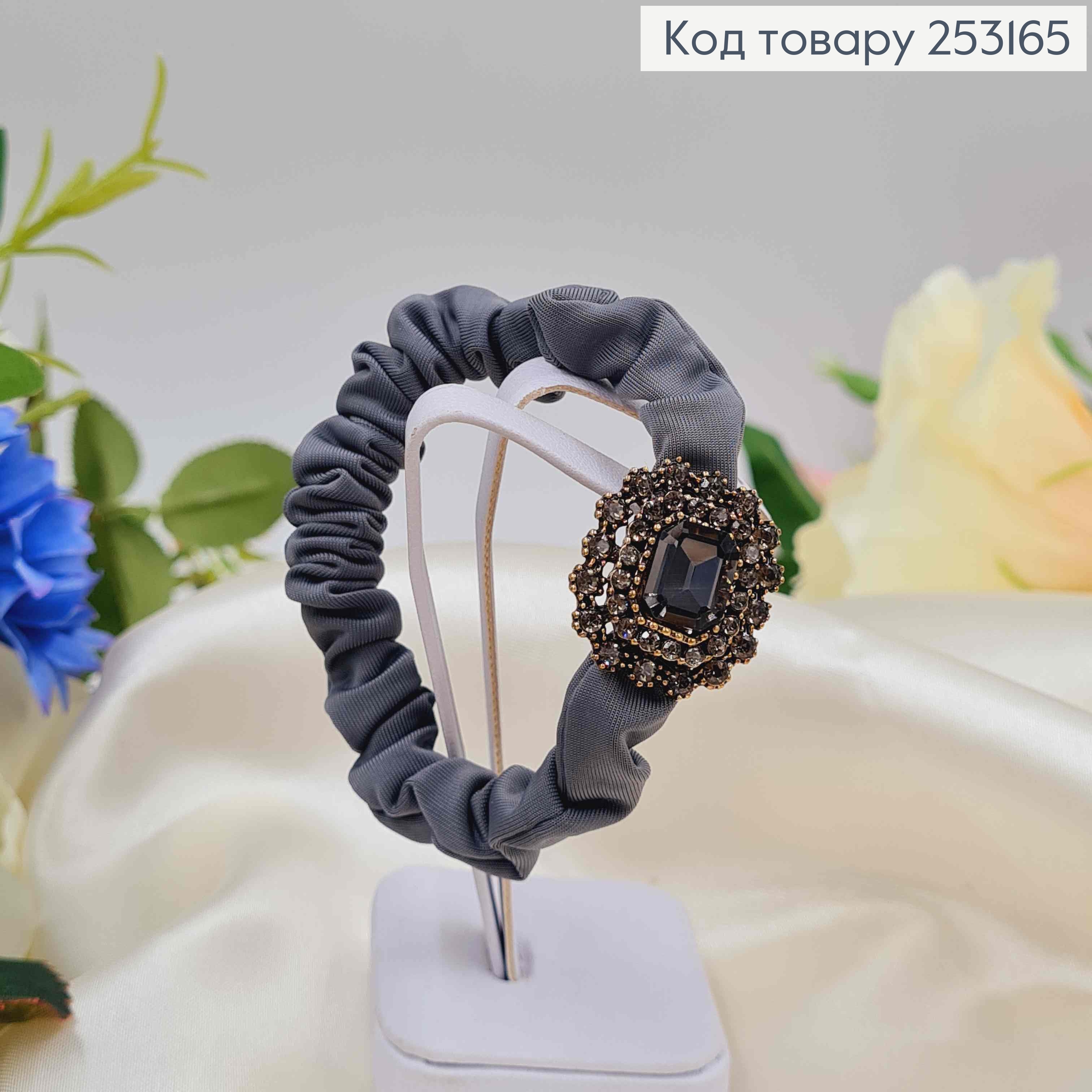 Резинка жатка 6см, Графітового кольору, з розкішною прямокутною бусиною