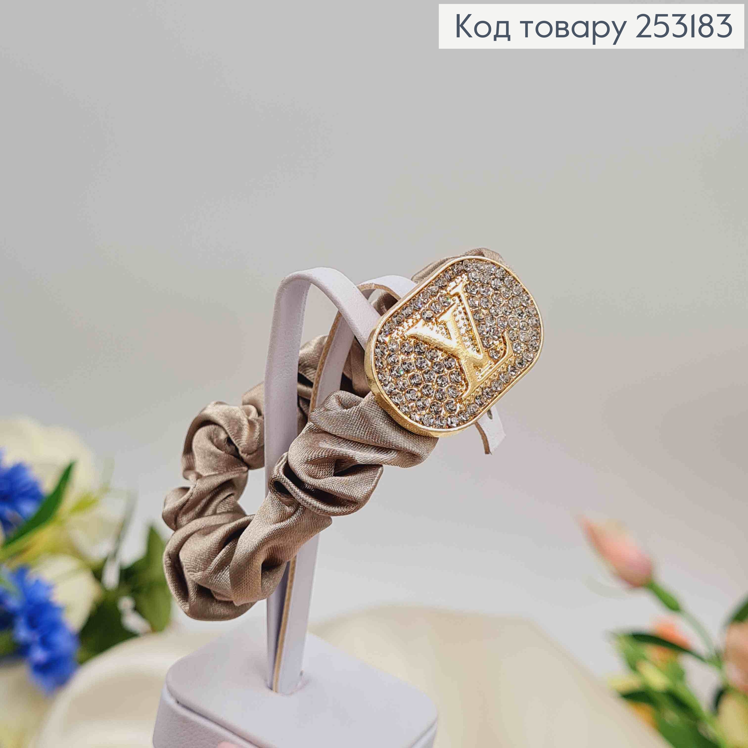 Резинка жатка 6см, кольору Капучино, з пластинкою "Луї Вітон" в камінцях